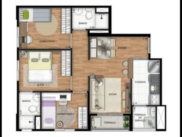 - Quartos: 3 quarto(s)