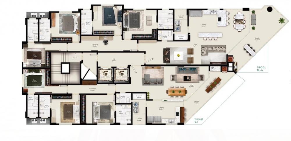 APARTAMENTOS COM 3 SUITES Completa área de lazer Hall de entrada mobiliado Hall dos apartamentos decorados 2 elevadores, sendo um social e um de serviços Entrada para banhistas Sistema de Monitoramento Interno Fachada com fechamento estilo Europeu e Fachada Glazzing Box de praia individual Medidores de água, gás e luz individuais Portaria 24 horas Revestimentos Externo totalmente pastilhado ÁREA DE LAZER: 01 Piscina adulto e infantil externa Salão de festas decorado e mobiliado Academia equipada Recreação Infantil Espaço Gourmet com churrasqueira Captação de Agua da chuva