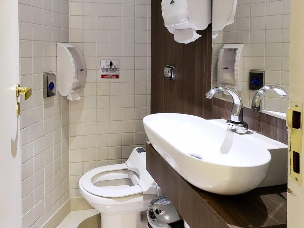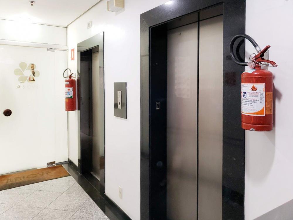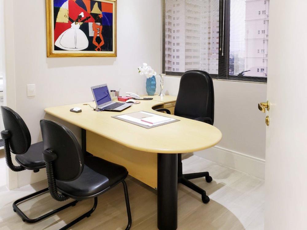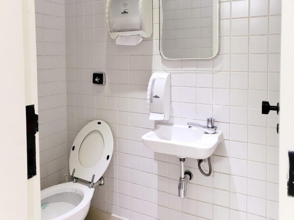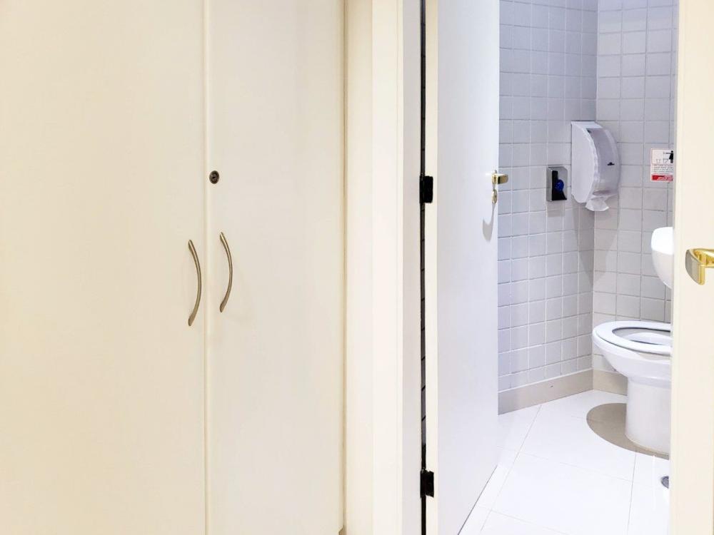 Conjunto Comercial com 97m² com quatro banheiros, duas vagas para garagem e armários nas salas.
