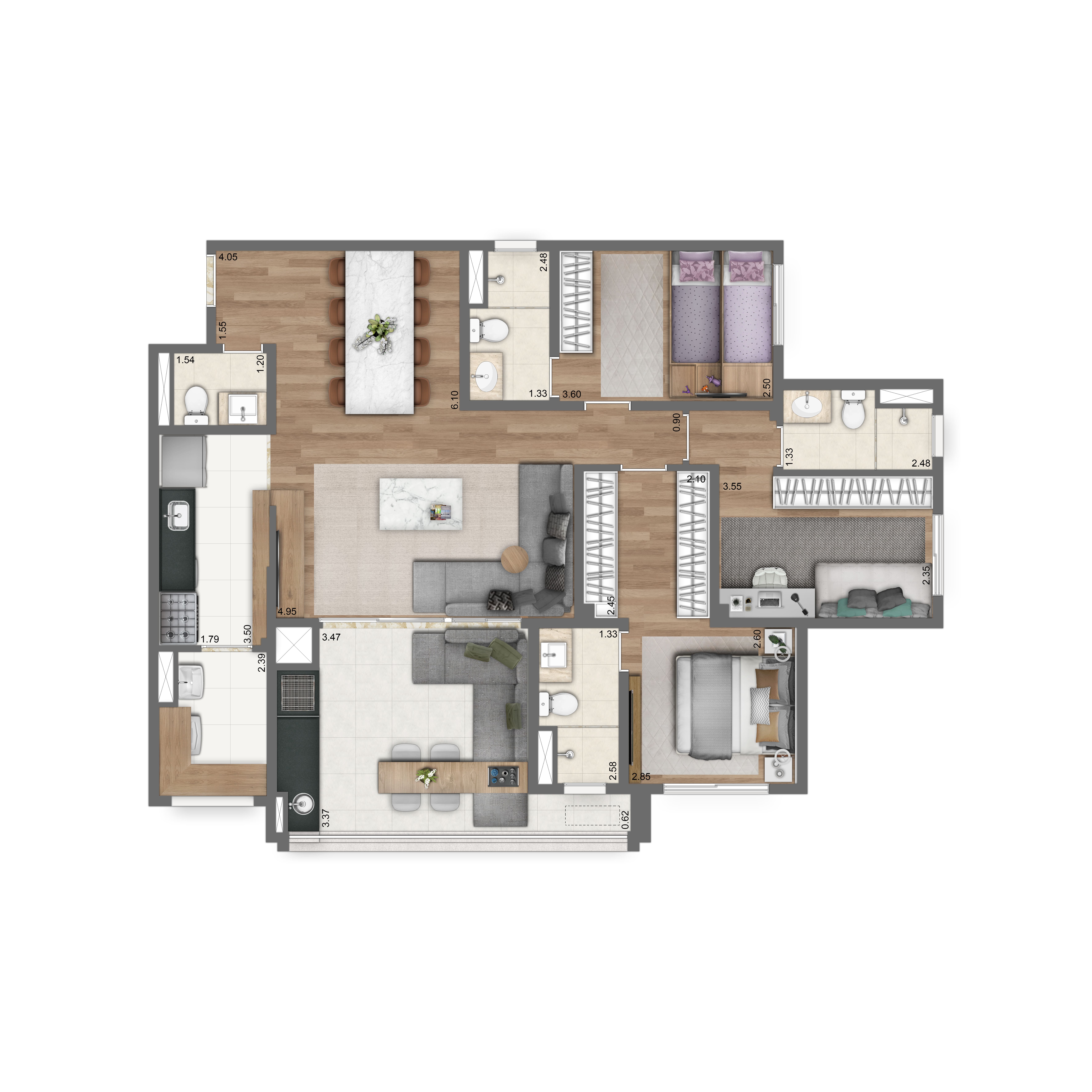 Apartamento com 3 suítes, varanda gourmet e 2 vagas de garagem