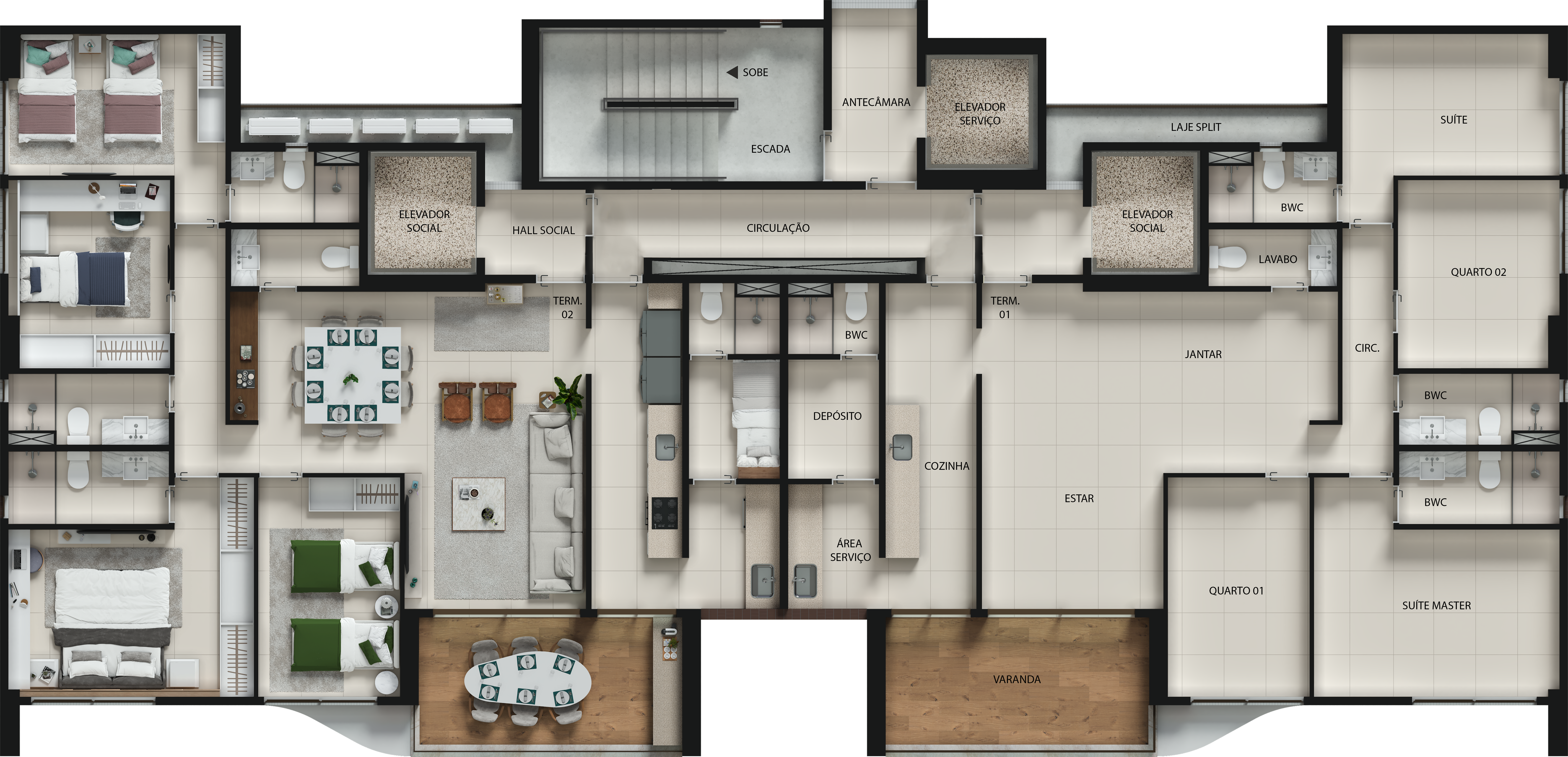 Apartamento: 131,82m² 02 Suítes 02 Quartos sociais Sala para dois ambientes Varanda gourmet integrada à cozinha Lavabo Banheiro social Cozinha Área de serviço Depósito Banheiro de serviço Vagas de Garagem 03 estilos de planta Conceito um por andar 02 apartamentos por andar mas os halls não se conectam 2000m² de área de lazer Miniquadra poliesportiva Futmesa Academia funcional ao ar livre (com barras, marinheiros, abdominal) Parquinho infantil (com gangorra, balanço, escorrego, bichinhos, bancos e árvores) Brinquedoteca Fitness Salão de Festas com bar Salão de jogos com sport bar Enoteca Gourmet Piscina adulto e infantil iluminada, com paisagismo tropical Piscina adulto com raia semiolímpica 25m Deck molhado com espreguiçadeiras Redário Espaço relax com cascata de água Bicicletário Pet garden & wash Terraço jardim Entregue equipado e decorado! Tecnologia - Fechadura eletrônica na porta social - Cabeamento estruturado para dados e voz na sala, quartos e varanda - Intalação de ponto de ar condicionado na sala e quartos - Gerador para áreas comuns e uma tomada e um interruptor nos apartamentos - Circuito CFTV para as área comuns - Ponto wi-fi nas áreas de lazer Sustentabilidade - Bacias sanitárias ecológicas - Torneiras com temporizadores nos wcs das áreas comuns - Torneiras com arejadores nos apartamentos - Lâmpadas LED na área comum - Painéis solares para área comum - Tubulação seca para recarga de carros elétricos para todos os aptos. - Calçada verde com alameda de jardim e árvores ornamentais Estrutura: Torre única 28 Andares Elevadores sociais e emergência Terreno de esquina Calçada ornamental Gentileza urbana Alto Padrão e sofisticação!
