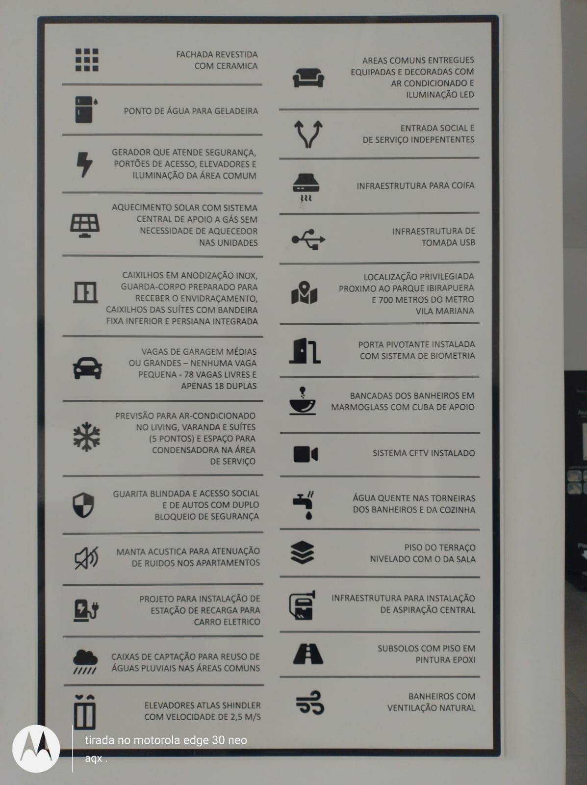 Ficha Técnica | ÁREA DO TERRENO 1.822 m² Nº DE PAVIMENTOS 20 UNIDADES POR ANDAR 2 TOTAL DE UNIDADES 38 PROJETO Marcos Gaviao Arquitetos Associados ÁREA ÚTIL Tipo – 113,5 4m² incluindo 5,07 m² de depósito Cobertura – 198,01 m² incluindo 6,94 m² de depósito VAGAS 3 LAZER Salão de festas, Repouso e Sauna, Brinquedoteca, Piscina, Guarita blindada, Fitness, Ducha circular, Churrasqueira, Quadra esportiva e Bicicletário DIFERENCIAIS Porta pivotante instalada com sistema de biometria Ponto de água para geladeira Aquecimento solar com sistema central de apoio à gá , sem necessidade de aquecedor nas unidades 5 pontos de previsão para ar condicionado Manta acústica para atenuação de ruídos nos apartamentos Caixa de captação para reúso de águas pluviais Infraestrutiura para instalação de aspiração central Banheiros com ventilação natural fachada revestida em cerâmica