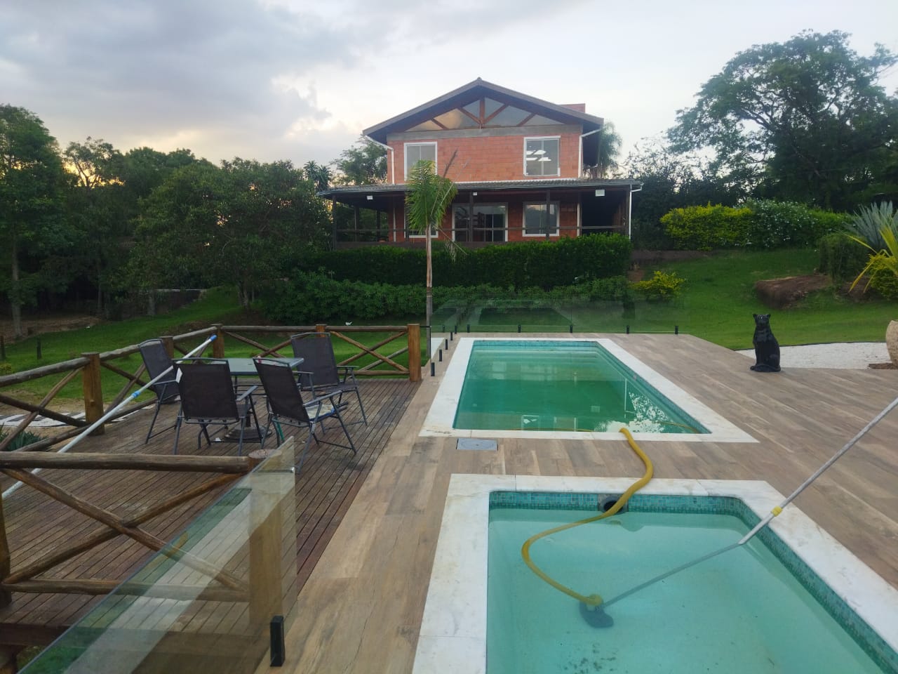 SITIO NO VALE DAS LARANJEIRAS EM INDAIATUBA - VENDA Terreno 20.800 metros Construção 650 metros Piscina adulto e infantil Área gourmet 200 metros com Suíte Mini campo Área preservação pertence ao sítio Área com areia de bit tênis Quiosque Casa com 3 dormitórios e Suíte Mesanino com linda vista Redario Canil Duas entradas separadas R$ 4.000.000.00