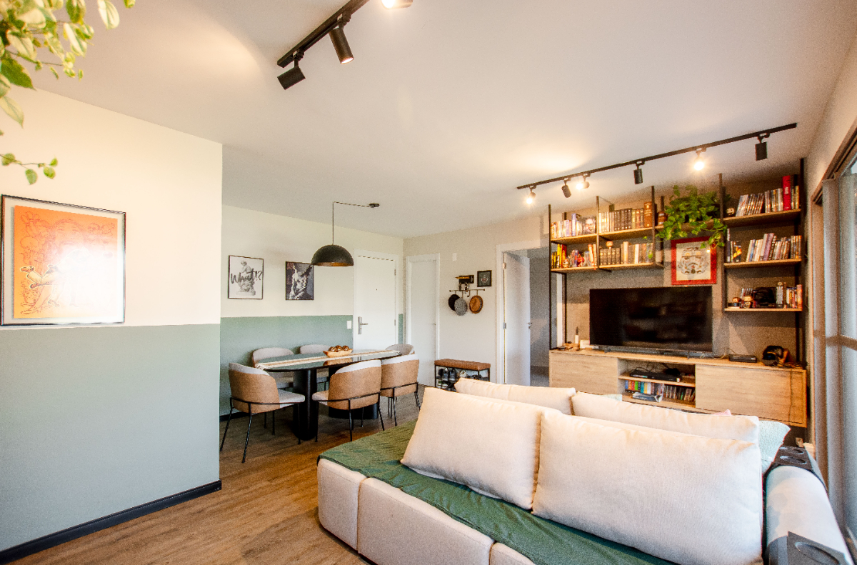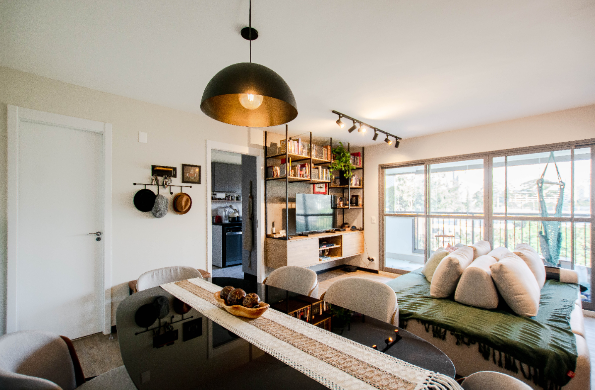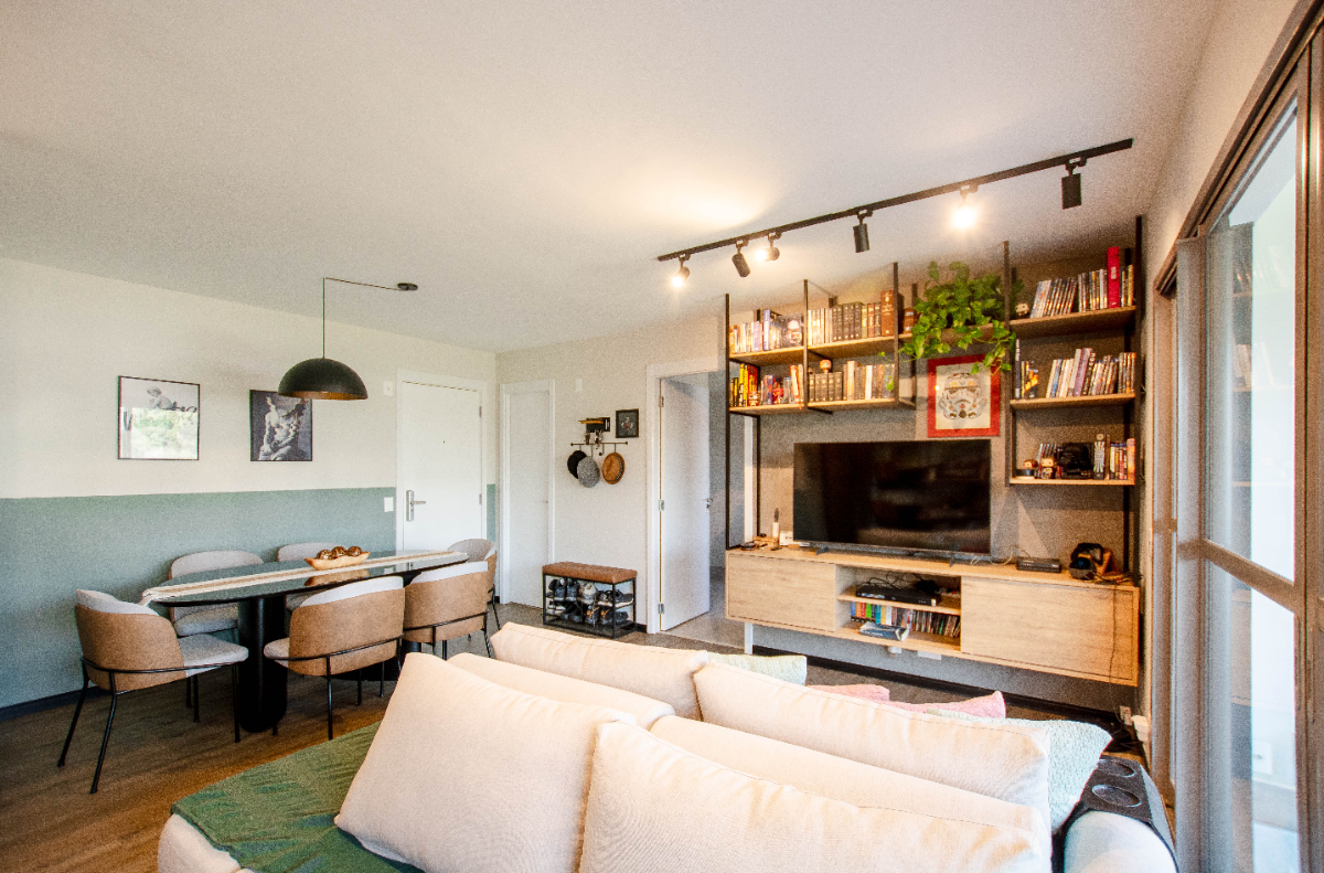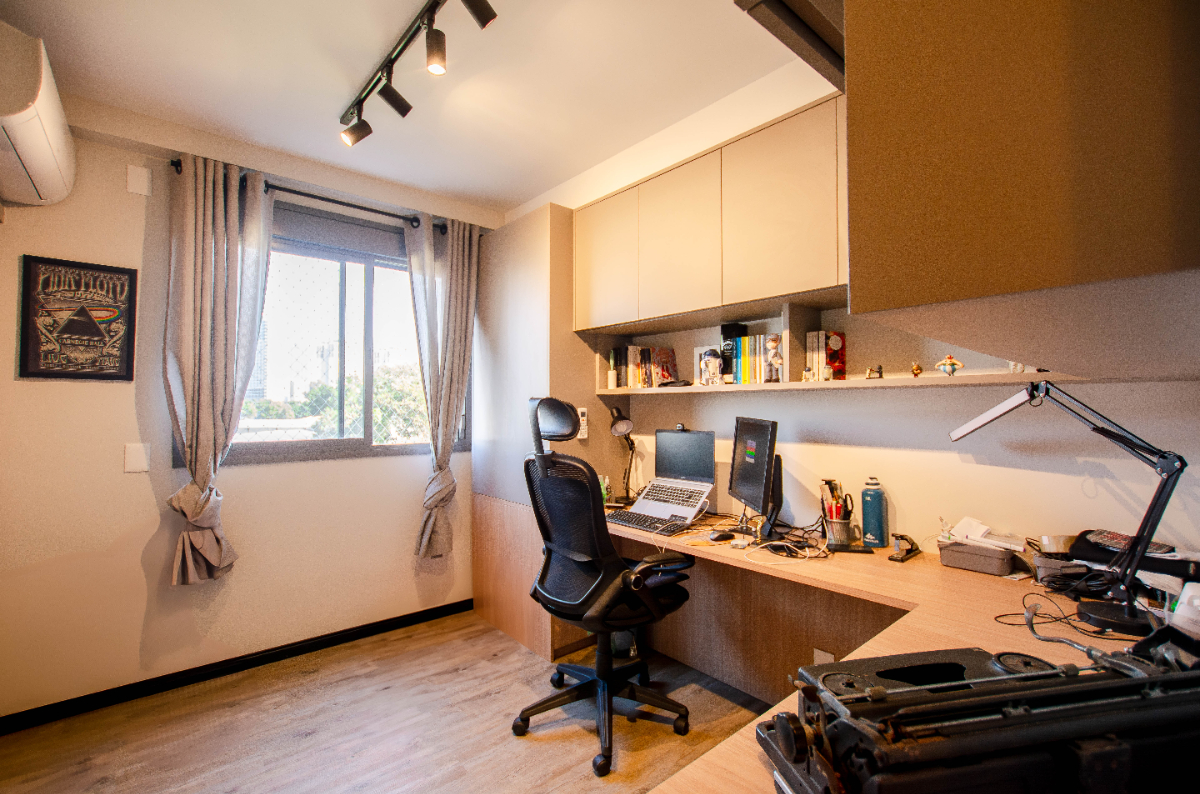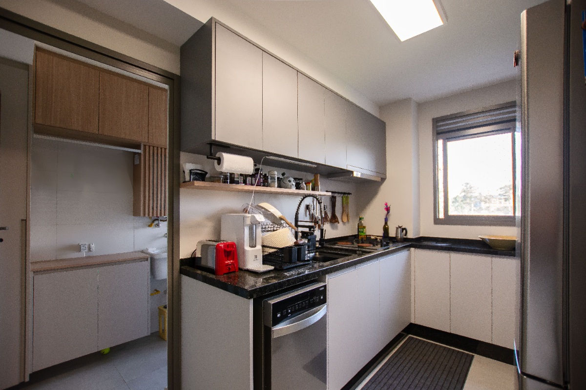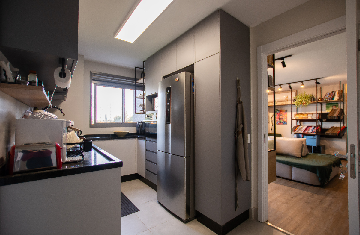 Apartamento novinho e super descolado no Living One com uma sala iluminada para 2 ambientes, além da sala de jantar, sacada com toda a estrutura para churrasqueira e fechamento em vidro, um charmoso lavabo, cozinha com triturador de lixo e área de serviço com despensa. Na área íntima são 2 dormitórios, sendo uma suíte e um dormitório convertido em escritório, repleto de prateleiras e armários. Todos os cômodos possuem ar condicionado, planejados com excelente qualidade, piso vinílico na sala de nos quartos, água quente nas torneiras e fechadura eletrônica nas duas portas. Na venda, ficam o forno e fogão, a sala de estar e a de jantar. Na garagem, duas vagas demarcadas. O condomínio conta com lazer super completo: piscina, sauna, academia, salão de jogos, brinquedoteca, salão de festas, espaço gourmet, área externa com churrasqueira, espaço para pets, área de banho para pets, quadra poliesportiva e playground. O condomínio possui portaria 24 horas.