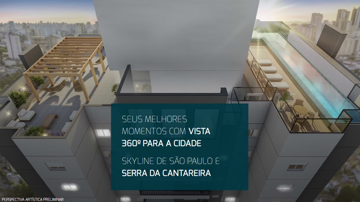 Arquitetura, Design, Lazer e conveniência tudo no mesmo endereço Torre única Vista livre e definitiva Lazer no 4º / 25º pavimento Fitness, Spa, 2 Salões de Festas, Mini quadra, Espaço Kids, Playgound, Sport Bar, Garden lounge, segurança planejada Projeto de arquitetura: Márcio Vaz Arquitetura Incorporação: Articon Incorporadora Nº de torres: 01 Construção: RMR Engenharia Processo construtivo: Estrutura de concreto armado Projeto do decorado e áreas comuns: Studio Branzaro Fachada: Contemporânea Terreno: 1.55000 m² Área construída: 15.266,47 m² Pavimentos: 26 Unidades: 176 Vagas: 144 INFORMAÇÕES