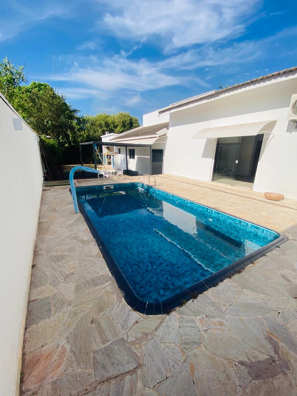 Encante-se com esta casa térrea, com 235,24 m² de área construída em um amplo terreno de 582,62 m². Ambientes internos: • Sala de TV e sala de jantar • 3 dormitórios (2 suítes, sendo 1 máster com pia dupla) • Cozinha com fogão embutido e despensa • Lavanderia • 2 banheiros sociais • 2 vagas de garagem Área externa e lazer privativo: • Espaço gourmet com churrasqueira • Piscina com hidromassagem e ducha externa • Banheiro externo • Pergolado • Quintal com pomar e jardim de inverno Acabamentos e diferenciais: • Ar-condicionado • Iluminação em LED • Gesso no teto • Móveis planejados em todos os cômodos • Esquadrias em alumínio • Pendentes e luminárias de alto padrão Lazer do condomínio: Academia, campo de futebol society, piscina, pista de caminhada, quadra de tênis, quadra poliesportiva, playground, salão de festas, portaria 24 horas, ronda e monitoramento por câmeras. Localização privilegiada: Próximo à Rodovia Castello Branco, Centro Nacional de Paraquedismo, mercados, escolas, farmácias, academias, restaurantes e muito mais.