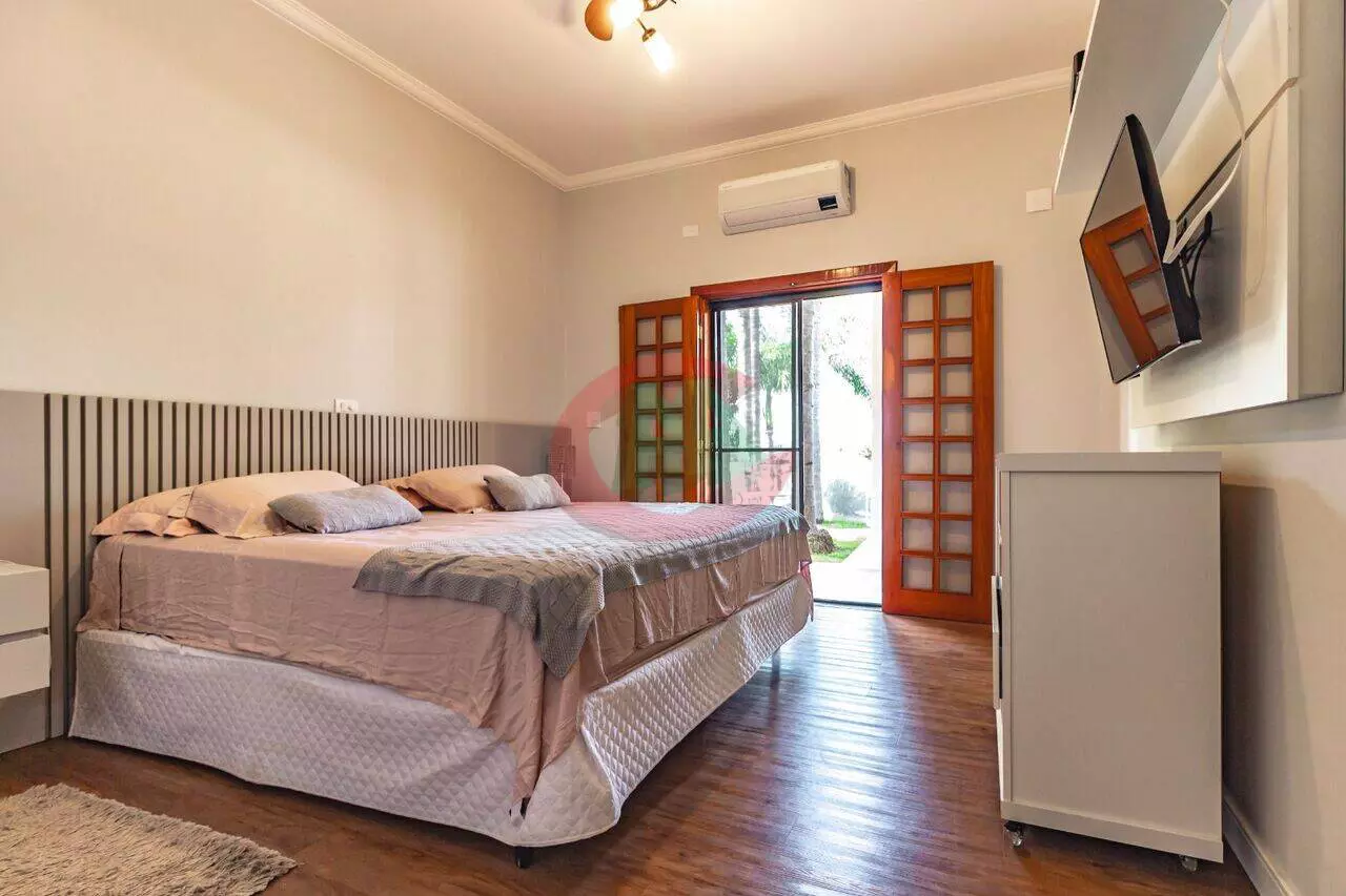 Chácara Excepcional em Indaiatuba com 3000m² de Terreno Esta deslumbrante chácara oferece o estilo de vida ideal para aqueles que valorizam o espaço, o conforto e a serenidade. Localizada em Indaiatuba, esta propriedade dispõe de uma série de comodidades e detalhes encantadores. Características Principais: Área Total de 3000m²: Um amplo terreno que oferece privacidade e espaço ao ar livre. Área Construída de 728m²: Uma residência espaçosa e bem-distribuída. Garagem Coberta para 4 Carros: Espaço conveniente para estacionamento. 6 Suítes: Incluindo uma suíte master com banheira de hidromassagem, sauna e closet. As outras suítes também possuem armários embutidos. Escritório e Lavabo: Espaços funcionais para trabalho e conveniência. Ampla Sala de Estar com Lareira: Um ambiente acolhedor para momentos relaxantes. Sala de Jantar e Sala de TV: Ideais para entretenimento e convívio social. Cozinha Planejada e Despensa: Equipada com móveis planejados e área de armazenamento adicional. Piscina e Jacuzzi: Com aquecimento solar, proporcionando conforto durante todo o ano. Área Gourmet Completa: Equipada com churrasqueira, forno de pizza e espaço para jogos como sinuca e carteado. Quadra de Tênis: Para os entusiastas do esporte. Poço Artesiano: Com uma vazão de 1M³/h, garantindo autonomia no abastecimento de água. Minicampo Gramado e Parquinho Infantil: Para momentos de lazer ao ar livre. Casa para Caseiro: Uma comodidade adicional para a manutenção e segurança da propriedade. Esta chácara oferece um refúgio sereno, cercado por palmeiras imperiais e um cenário natural deslumbrante. O pomar diversificado adiciona um toque especial, com árvores frutíferas como jabuticaba, amora, manga, limão, acerola e lichia. Desfrute da vista panorâmica do verde todos os dias, seja à beira da piscina ou na sala de estar.