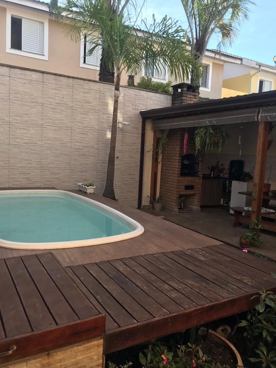 Casa em Condomínio, contendo 02 pavimentos, sendo: Pavimento inferior com Sala de Jantar e visita, lavabo, hall de escadas, cozinha, área de serviço e Pavimento superior com 03 (dormitórios), sendo 01 suíte e sacada e 01 banheira, 01 banheiro. Parte externa com quintal descoberto, 01 piscina em fibra, móveis planejados na cozinha, nos dormitórios, área gourmet.