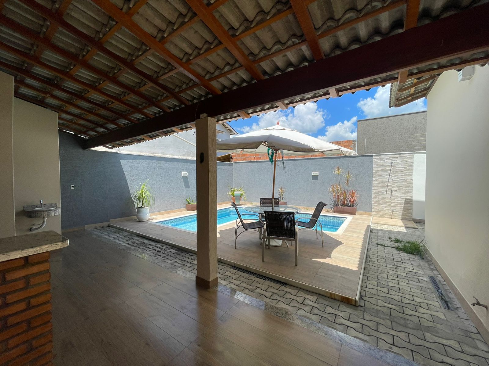 Nossa Terra Imóveis de Eunápolis/Ba vende Bela casa com piscina no bairro Colonial Composta por: 03 quartos sendo 01 suíte com closet Banheiro social Sala ampla Sala de jantar Cozinha com armários Lavanderia coberta Despensa Banheiro externo Piscina Garagem para 02 carros Canil Casa semi mobiliada ( Todos os móveis das fotos ficam ) Possui 03 ar condicionados Possui cortina em todos os quartos R$ 670 mil Mais informações: (73) 3281-9866 (73) 73 8183-7882/9 8804-6279 – Whatts App Nossa Terra Imóveis, os bons negócios passam por aqui!!