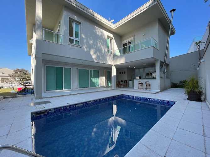 REF: 141 - Linda residencia em condomínio fechado com portaria e segurança 24 horas e área de lazer; construída em terreno de 481 m2 e área útil construída de 451 m2; projeto funcional e bem distribuída; 04 saítes sendo a master com closet, chuveiro duplo e hidromassagem; living privativo no piso superior; ; salas amplas com lareira; home theater; escritório e cozinha espaçosa; área guormet com churrasqueira e forno a lenha integrada com a piscina; equipada com ar condicionado quente e frio, aquecimento solar, percianas elétricas; 04 vagas de garagem sendo 02 cobertas; localizada em um condomínio em meia a natureza. IMÓVEL OFERTADO SEM MÓVEIS E DECORAÇÃO. ESTUDA PERMUTA. ESTUDA PARCELAMENTO. ACEITA FINANCIAMENTO. NOSSO SITE: www.fauimoveis.com.br
