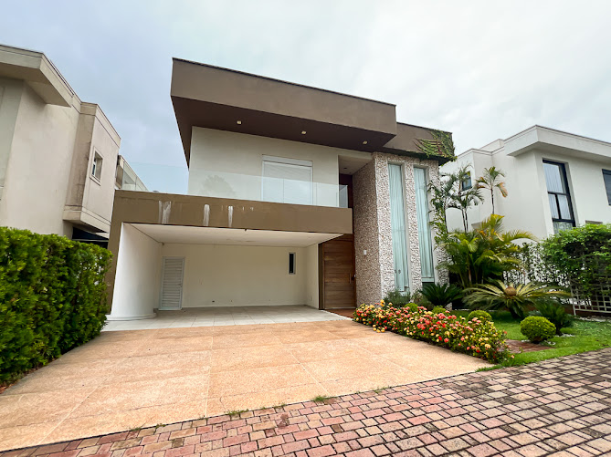 REF: CASA 147 - Residencia de alto padrão em condomínio fechado com portaria controlada e segurança interna/externa 24 horas; área de lazer com quadra poliesportiva, quadra de tênis, academía, salão de festas, parquinhos, sauna, lanchonete, tudo em meio a umas grande área verde de preservação ambiental; com 548 m2 de área construída; msãom 06 suítes com destaque para a master com hidromassagem e cromoterapia; escritório; amplo living; integrado para vários ambientes e com lareira; cozinha planejada e despensa; acabamentos com mármore e porcelanado portinari e corrimãos em inox; sistema de aquecimento solar atendendo o boiler e piscina; área de lazer deiferenciada com wespaço gourmet completo com churrasqueira, forno de pizza, fogão a lenha;piscina e ofurô; 04 vagas de garagem sendo 02 cobertas. IMÓVEL OFERTADO COMO ESTA NAS FOTOS. visite o nosdso site: www.fauimoveis.com.br