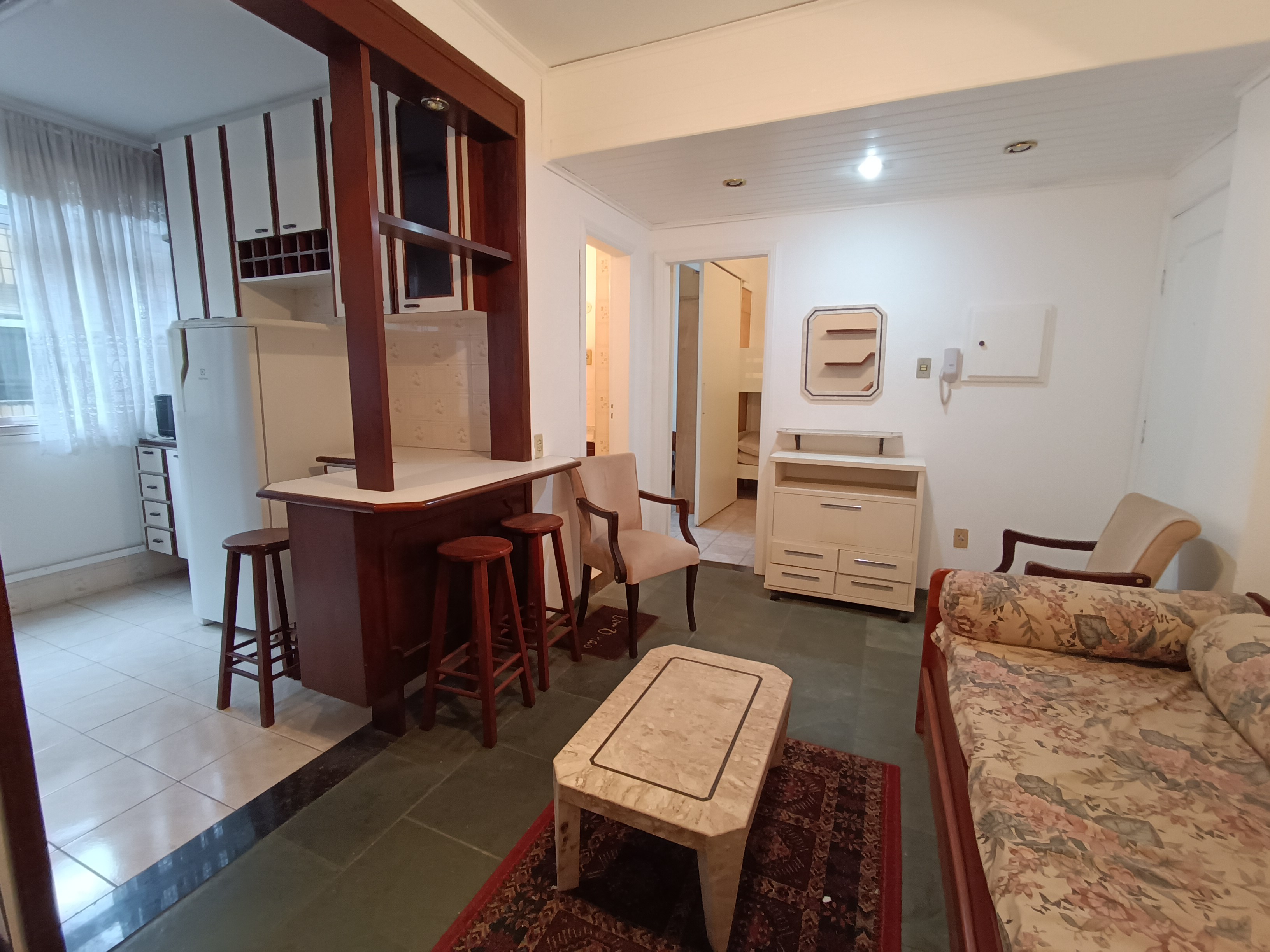 Gonzaga à 2 quadras da praia, otimo 1 dormitorio, mobiliado, andar alto, sala grande, cozinha ampla, wc social, quarto grande dividido em 2 quartos pequenos, garagem demarcada na escritura, vazio excelente localização, proximo de tudo, Shoppings, bancos, academias, supermercados, cinemas, restaurantes, farmacias, transporte publico, padaria etc, vazio chaves e visitas com Daniel