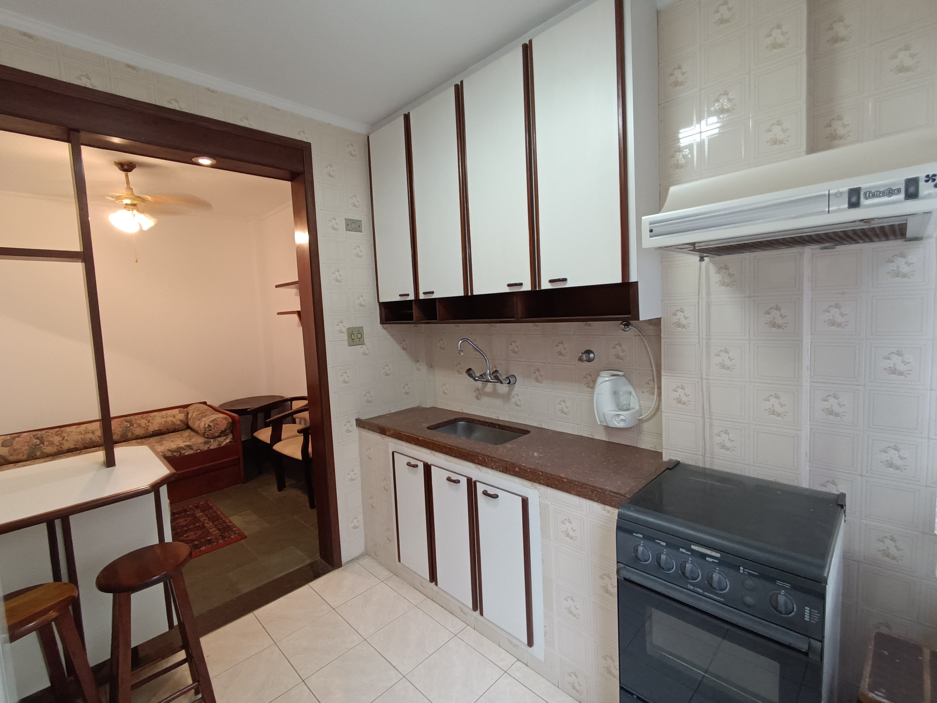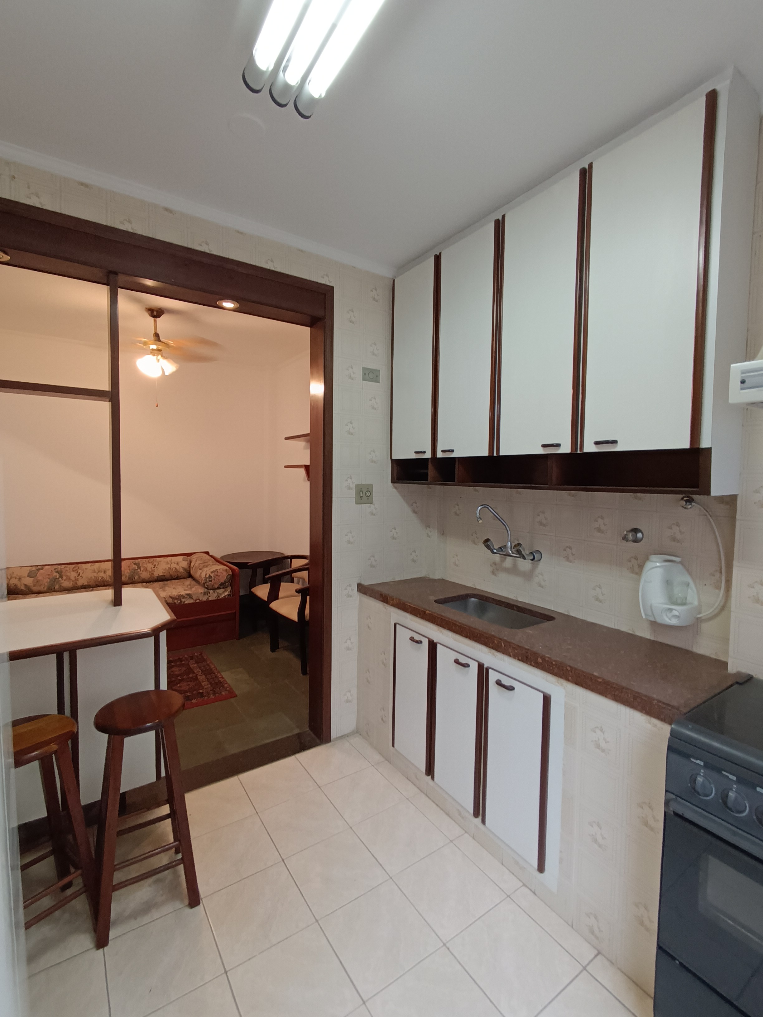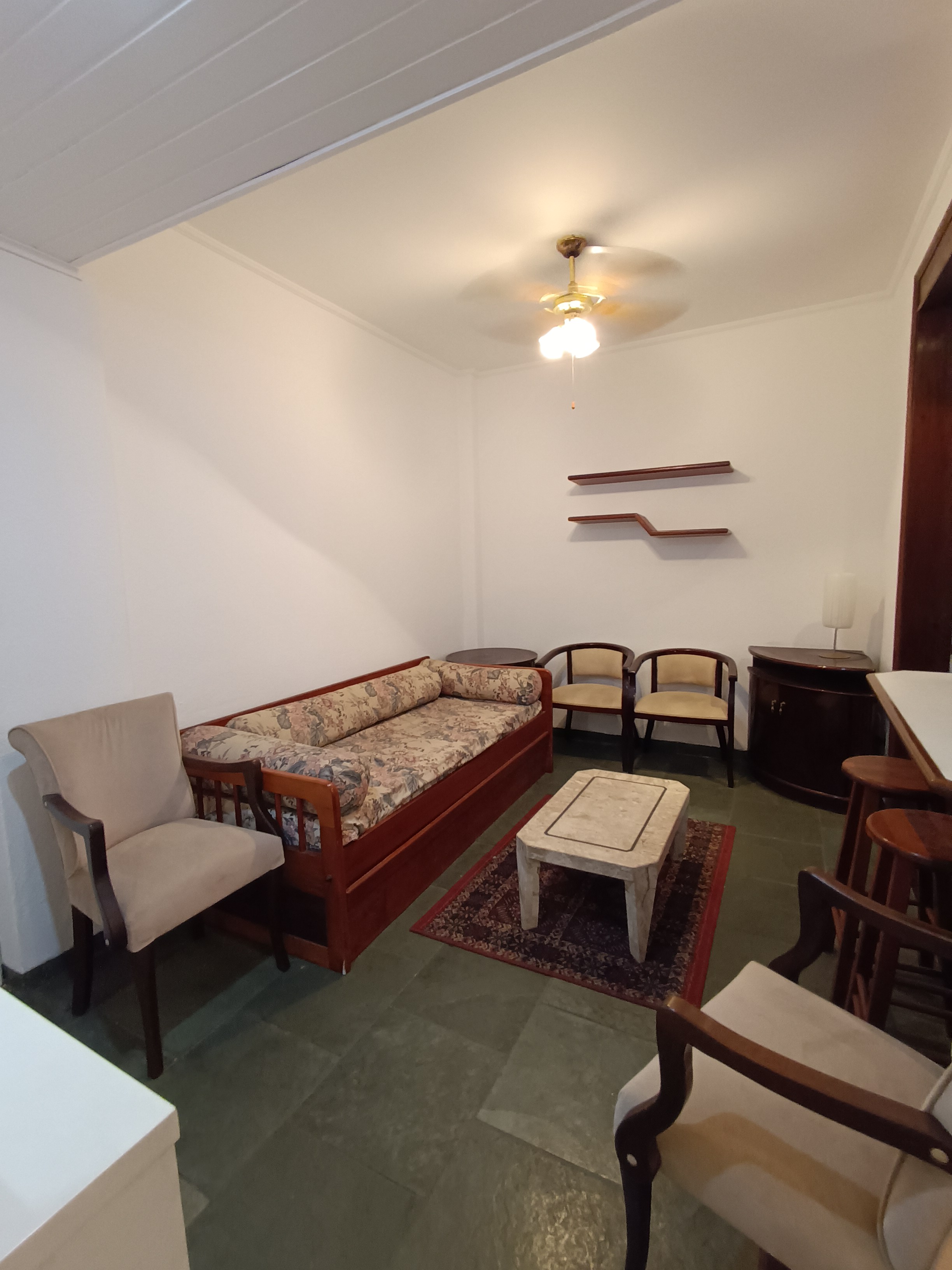 Gonzaga praia, otimo, quarto e sala mobiliado, andar alto, cozinha, wc social, garagem com escritura