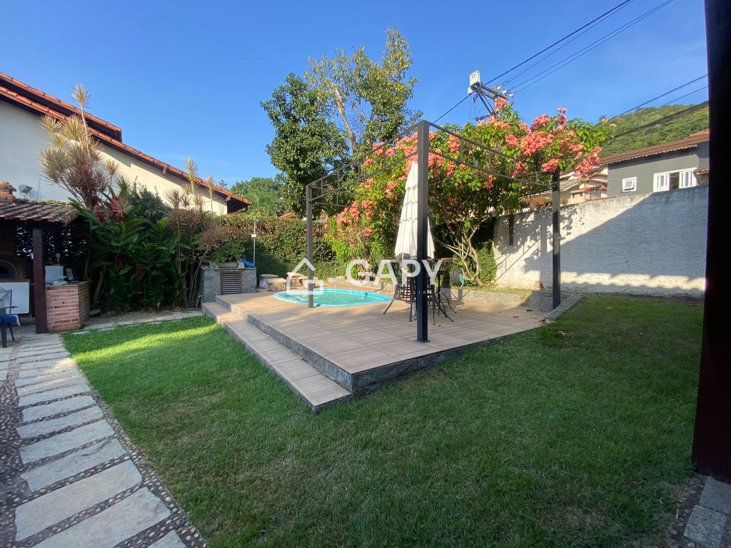 Prazer em descansar e sentir o frescor do ar puro sem sair de Niterói. Se você está buscando algo assim, encontrou. Casa linear aconchegante construída em madeira tratada de Angelin-pedra e alvenaria, dentro de condômino fechado com segurança 24 horas e lazer, incluindo: campo de futebol, quadra de basquete, play ground infantil, academia e salão de festas. Possui em sua configuração: três quartos (sendo duas suítes), closet, duas salas com varanda em torno, banheiro social, copa-cozinha com armários planejados e área de serviço independente. Tudo isso com construção em centro de terreno, com área gourmet, piscina, quintal com jardim e vaga de garagem coberta. Agende já sua visita e confira! Gapy, seu imóvel no lugar certo!