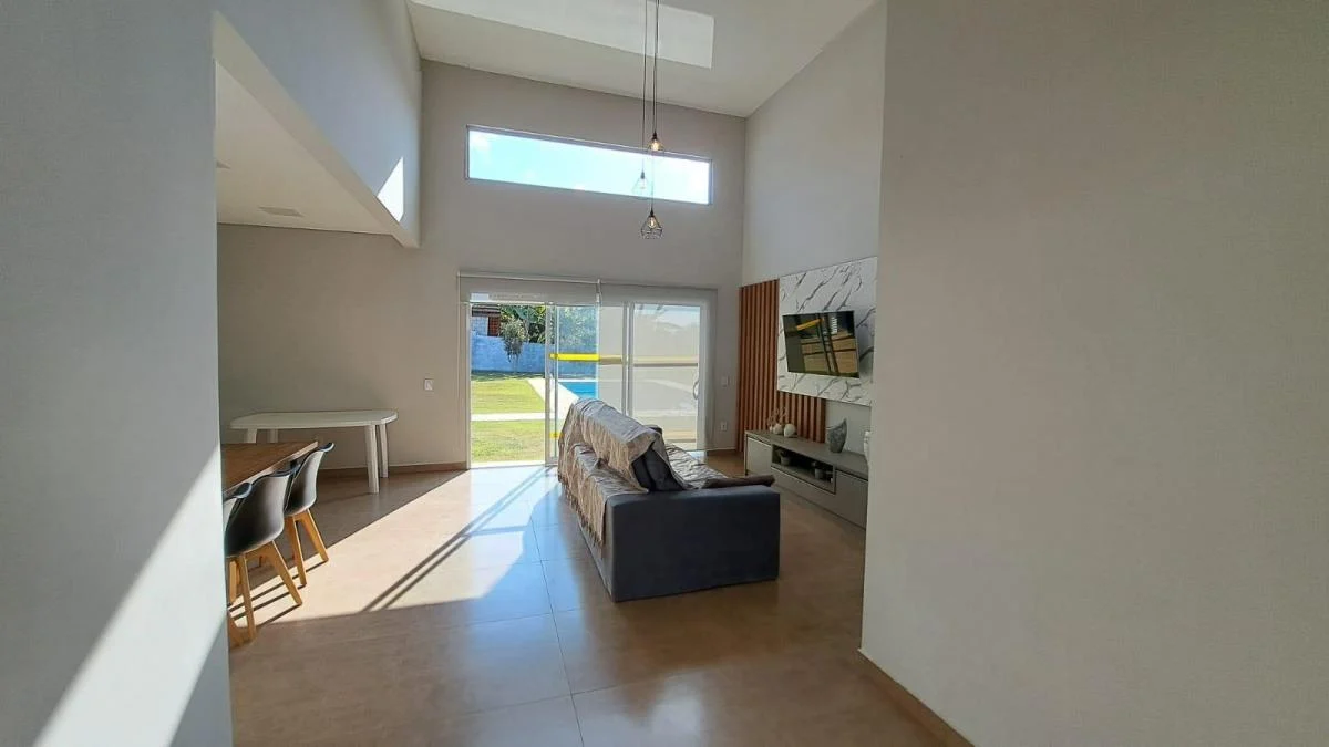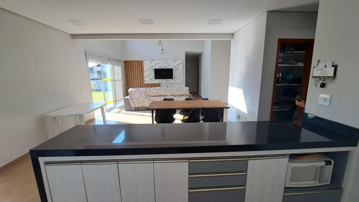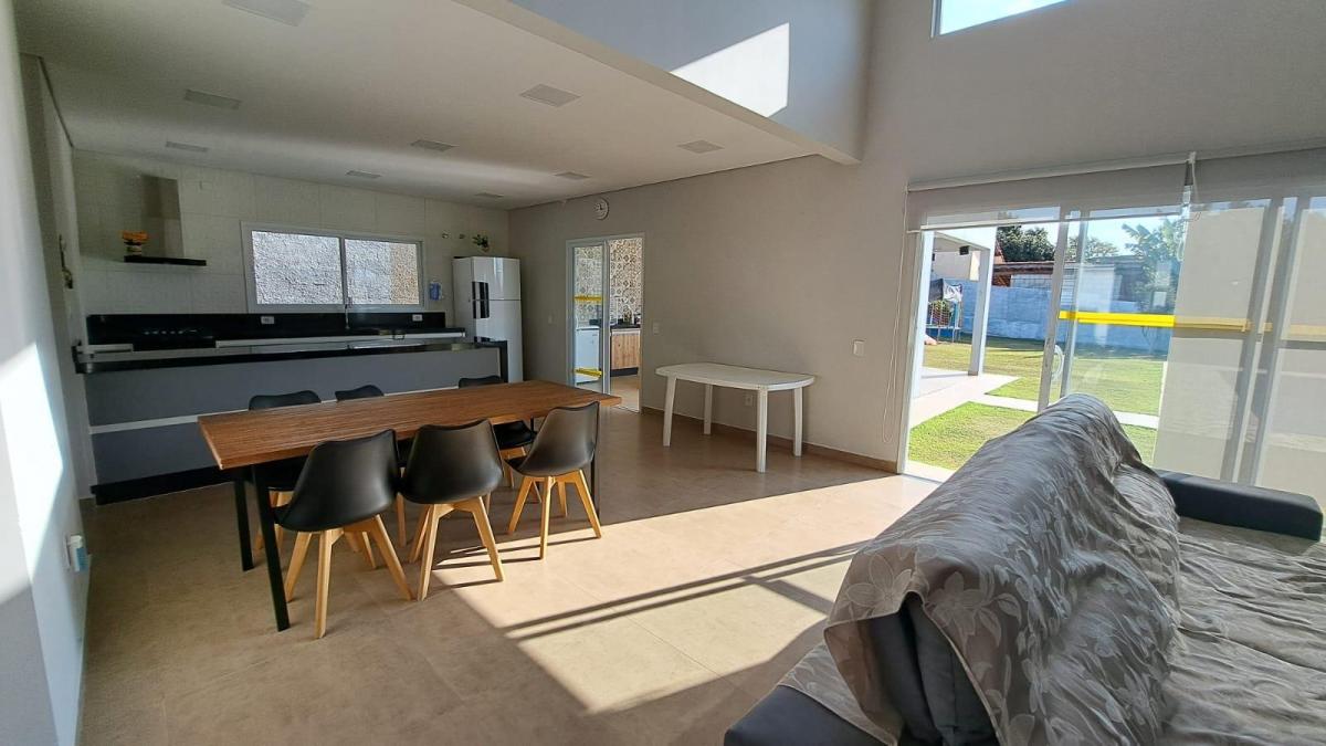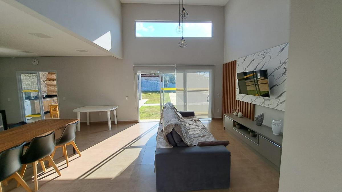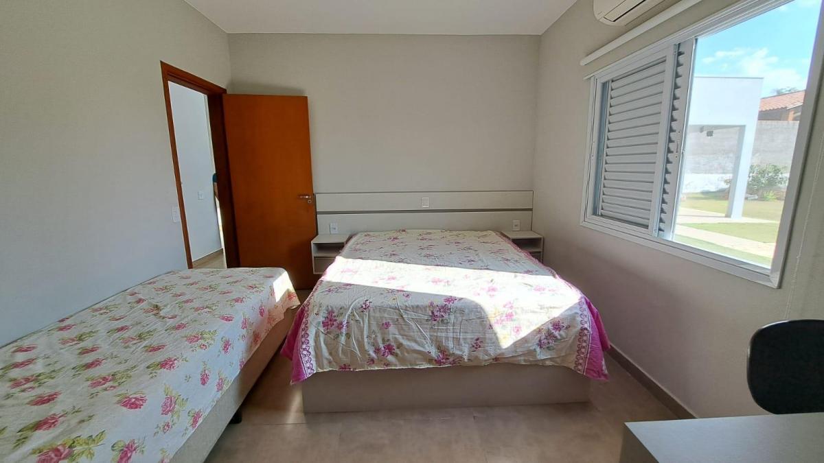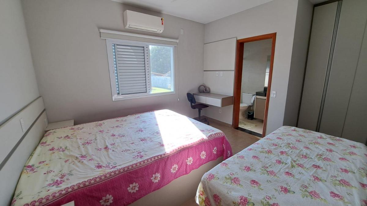 Este imóvel é uma ótima opção para quem procura um lugar tranquilo, cercado pela natureza e com muita segurança. - piscina de alvenaria; - espaço gourmet com churrasqueira, pia, armário; - banheiro que atende a piscina; - depósito; - 01 suíte com closet; - 02 quartos, sendo 01 com armários planejados; - 01 banheiro social; - cozinha com armários planejados, sala de jantar, sala de TV ambientes integrados; - despensa; - lavabo; - lavanderia; - garagem coberta para 02 carros, descoberta para 02 carros - infraestrutura para aquecimento; - ar condicionado; - portão automático - quintal com gramado e árvores frutíferas e brinquedos infantis. Para morar ou lazer este imóvel é uma ótima opção, além de estar localizado em um condomínio com segurança e portaria 24 horas, área verde com mini quadra de futebol, playground, quadra de beach tênis, alamedas arborizadas para caminhadas e cercado por exuberante natureza, perto de vias de acesso. O proprietário estuda proposta e documentação ok para financiamento. Marque uma visita, teremos prazer em atender você.