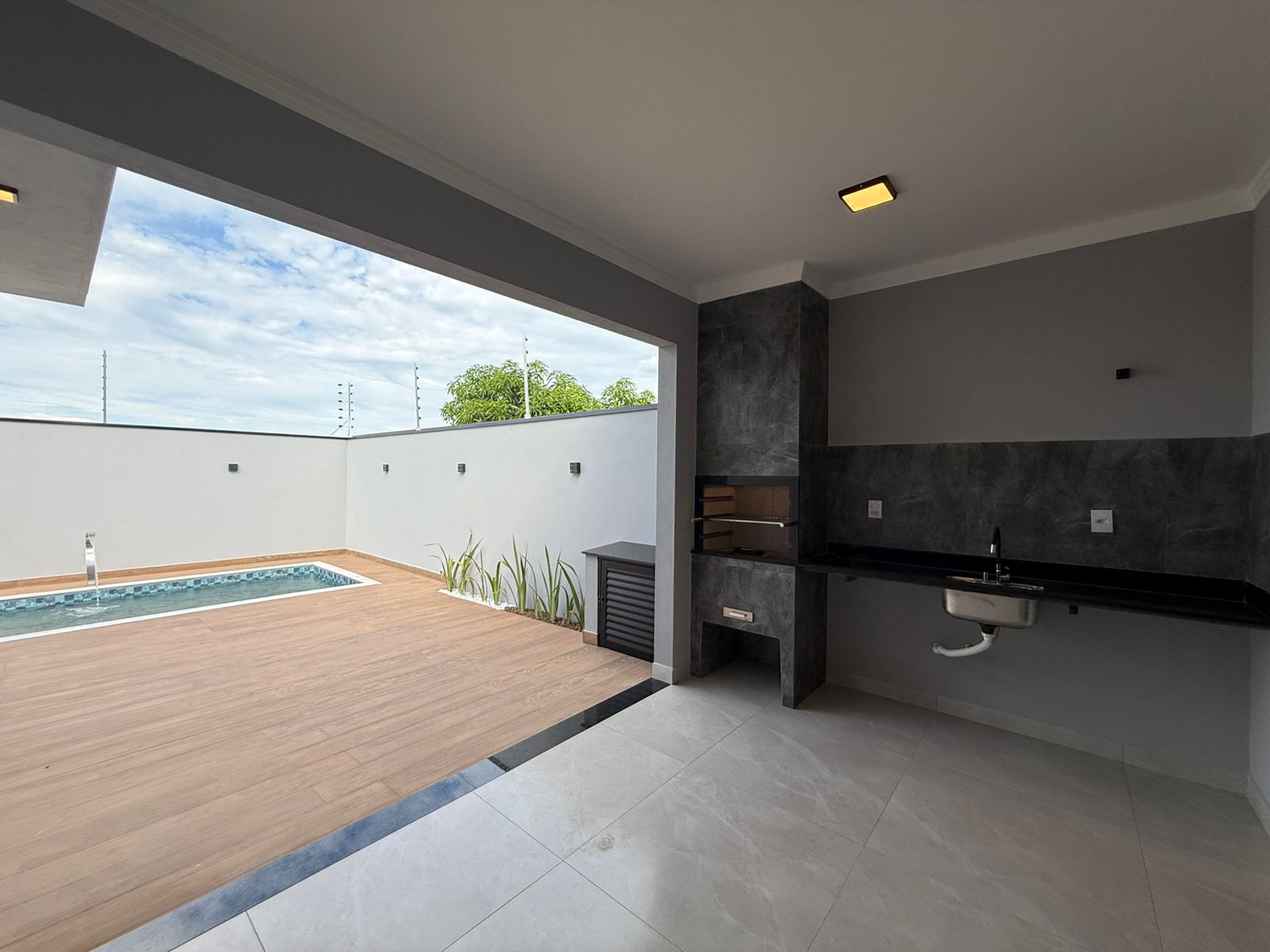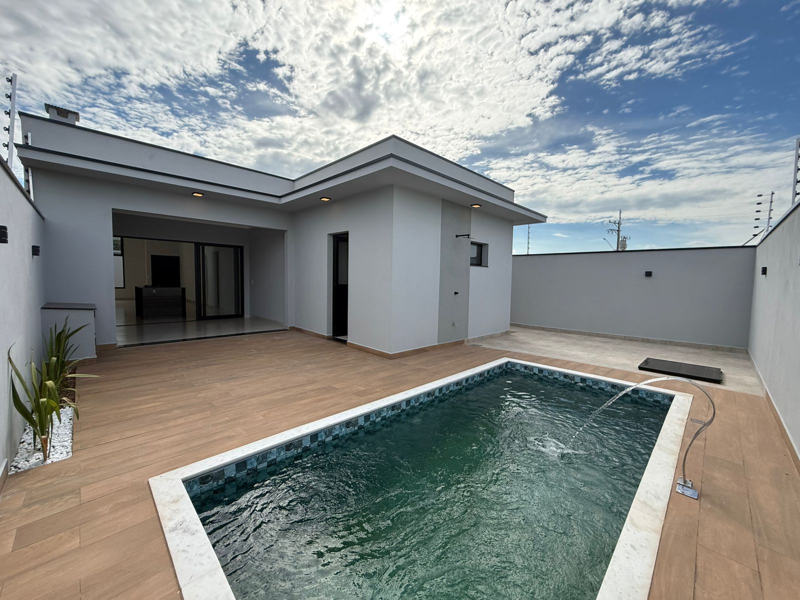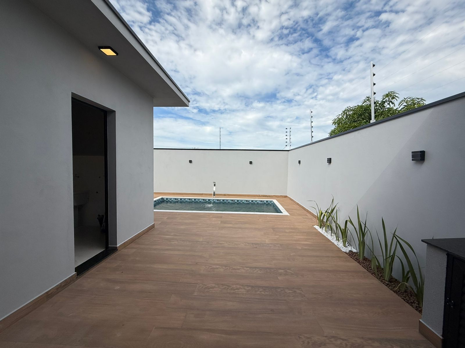 Esta linda casa possui 3 dormitórios sendo 1 suíte, 2 banheiros e 2 vagas de garagem. Com área total de 250m² e área construída de 143m². - 3 dormitórios sendo um suíte - Garagem coberta para 2 carros - Cerca elétrica - Interfone - Portão automático - Porta com fechadura eletrônica - Pé direito alto - Ilha gourmet com fogão cooktop e torre de tomada - Área gourmet com - Churrasqueira - Banheiros com box e espelho - Piscina com cascata Agende já sua visita!