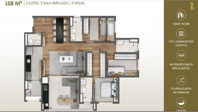 - Área util: 108 m²