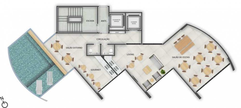 49m² 2quarto sendo 1 suite sala cozinha banheiro social Área de Lazer: Coworking Fitness Piscina panorâmica Salão de festas com living integrado Espaço gourmet Pet place Bicicletário Área Gourmet Espaçao Yoga Academia Academia Funcional Estrutura: Torre: 1 Qt de andar: 17 Apt por andar: 4 2 elevadores 1 vaga de garagem Gás encanado Interfone Lavanderia