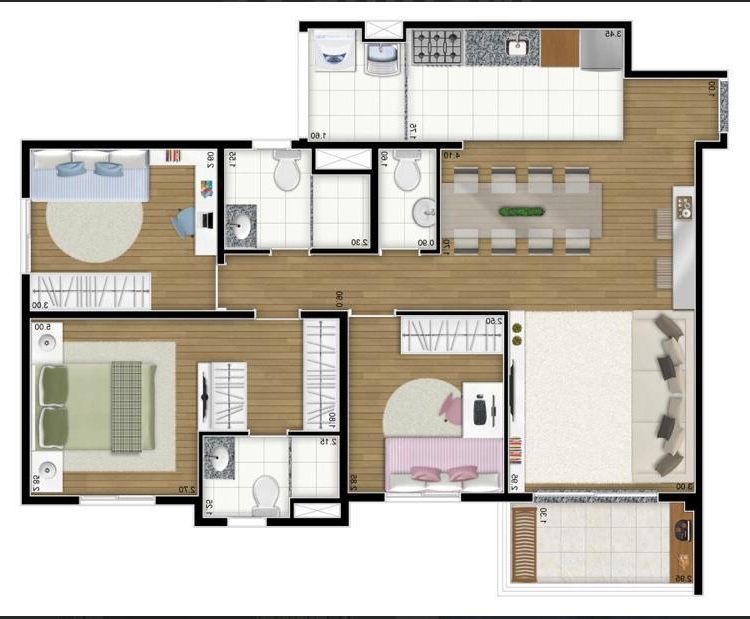- Quartos: 3 quarto(s)