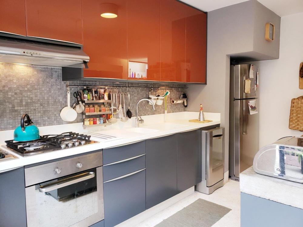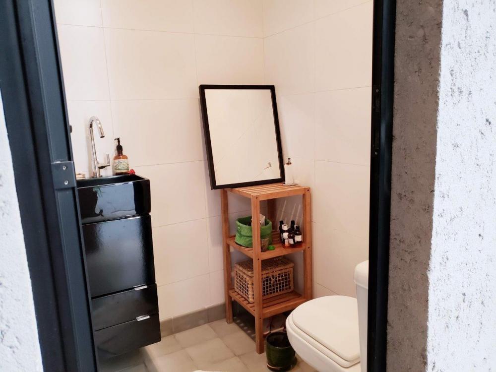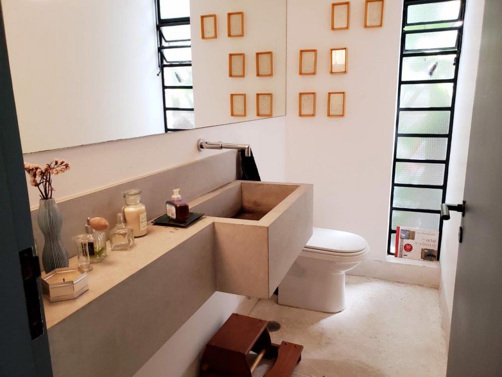 Situado no miolo do Alto da Boa Vista, próximo à s principais atrações e facilidades do bairro [praças, escolas, metrô, serviços de conveniência], este antigo sobrado paulistano se transformou na vivenda atual de um casal com um filho pequeno, após reforma cuidadosa conduzida pela própria moradora, que é arquiteta. Em sete meses, o casal ganhou espaço com uma ocupação mais racional e sutis ampliações, que inspira bem-?estar em cada canto. Mudanças sutis como a posição da porta de entrada, a ampliação das janelas e a derrubada da parede entre cozinha e sala trouxeram um ar contemporâneo e ao mesmo tempo, preservaram a linguagem modernista da construção dos anos 60. O telhado foi inteiramente revisado, elétrica e hidráulica foram refeitos e os materiais e equipamentos empregados na obra foram de excelente qualidade: louças e metais Deca, bancadas de banheiro em limestone, aquecedor à gás Rinnai, pressurizador Rowa, armários Cinex/Brinna, luminárias Reka, ar-condicionado nos quartos e escritório, persianas Luxaflex, interruptores e tomadas Pial, dentre outros. As escolhas visuais em tudo foram sóbrias e atemporais, convertendo a antiga casa em um espaço feito para conviver, receber e produzir. Hoje, a vida da família toma novos rumos e por isso o espaço vai à venda. Mobiliário e eletrodomésticos podem ser negociados também. DIFERENCIAIS 1_A marquise alterna fendas para iluminação natural e estrutura fechada para o passeio da entrada de pedestres; ninguém toma chuva para entrar em casa. 2_Porta fecha a passagem para o corredor lateral, que conduz ao escritório, garantindo privacidade e segurança. 3_A lareira de concreto incorpora nichos que servem de mesas laterais para o estar e formam a base para uma generosa prateleira decorativa. 4_Em uma das vagas de garagem, placas drenantes demarcam o espaço para um carro preservando a permeabilidade do solo. 5_O limite entre as paredes e o piso de granilite das ala é demarcado por um rodapé metálico invertido, que dá a impressão de que as paredes estão descoladas do chão. 6_Voltada para o corredor lateral, foi aberta uma janela composta de duas folhas de correr e uma bandeira fixa de vidro aramado, trazendo claridade e ventilação. 7_A escada original foi inteira preservada, mantendo a linguagem arquitetônica dos anos 60. 8_Da mesma forma, os amplos vitrôs instalados na casa desde sua construção permaneceram, mantendo a boa ventilação cruzada e a sensação de amplitude. 9_O bufê da sala de jantar foi uma das estratégias usadas para ganhar espaço; seu projeto aumentou a capacidade de armazenagem do ambiente sem interferir na circulação. 10_O balcão de concreto abriga a um só tempo o micro-?ondas, nichos para bancos, além de um armário e pequena despensa. 11_A bancada da pia foi refeita com Corian [DuPont] e a parede, revestida com pastilhas Vidrotil. 12_O piso de granilite traz um ar vintage alinhado ao projeto e, ao mesmo tempo, facilita a limpeza. 13_No teto da edícula, claraboias garantem iluminação natural ao banheiro de serviço e à lavanderia. 14_A laje deu origem a um solário com canteiros para plantas, garantindo uma vista verde à janela da suite. 15_Blocos-vaso formam um jardim vertical e equilibram visualmente o recuo gerado pela bay-window do escritório. 16_Uma escada caracol leva ao solário de maneira compacta e conveniente. 17_A parede que fechava a lavanderia foi inteiramente refeita com elementos vazados, promovendo luz e ventilação constantes para o ambiente.