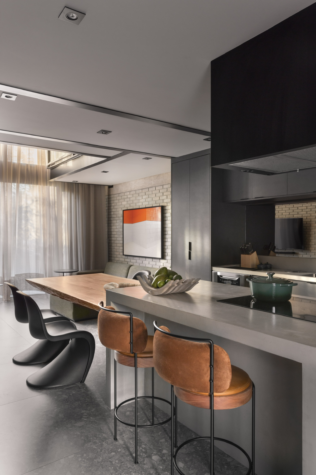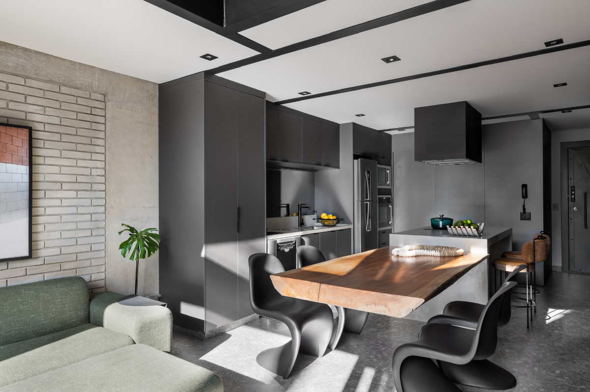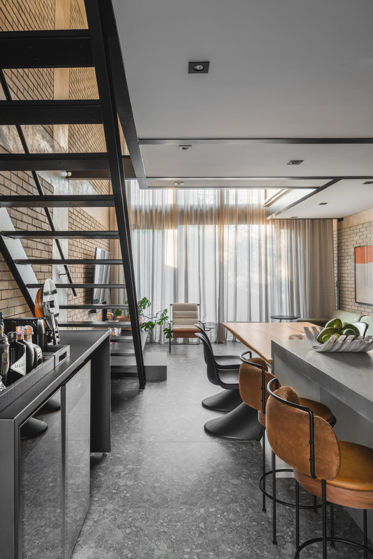 Apartamento tipo loft com 124 m² de área privativa, 1 suíte, 2 vagas de garagem, terraço tipo garden, piscina, churrasqueira e depósito privativo localizado no condomínio Loft São Paulo V, no bairro de Pinheiros. O projeto, assinado pela FJ55 Arquitetos + Renato Santoro, apresenta uma expansão de 16m² de avanço da estrutura metálica do pavimento superior e 6m² de avanço da estrutura do home office. Maiores informações: https://fortrealestate.info/loftsaopaulov