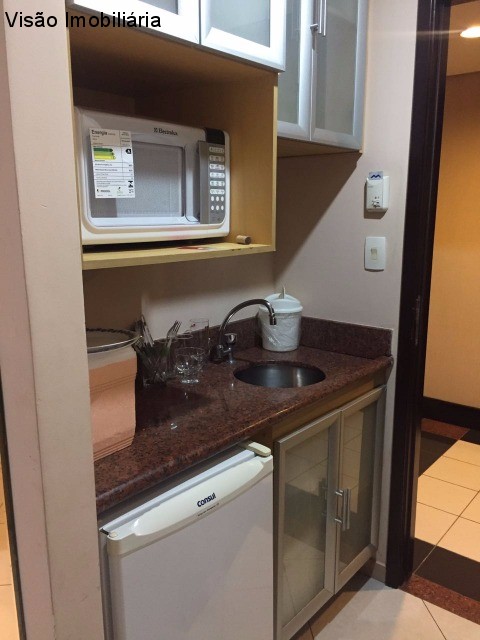 "Flat com mobiliário, cômodas, cama, mesa de trabalho/estudo, roupeiro, sofá, armários na copa, espelhos, box de vidros temperados, Climatizado com split, Eletrodomésticos na copa (frigobar, micro-ondas) e TV, Iluminação, persiana. APARTAMENTO para Venda