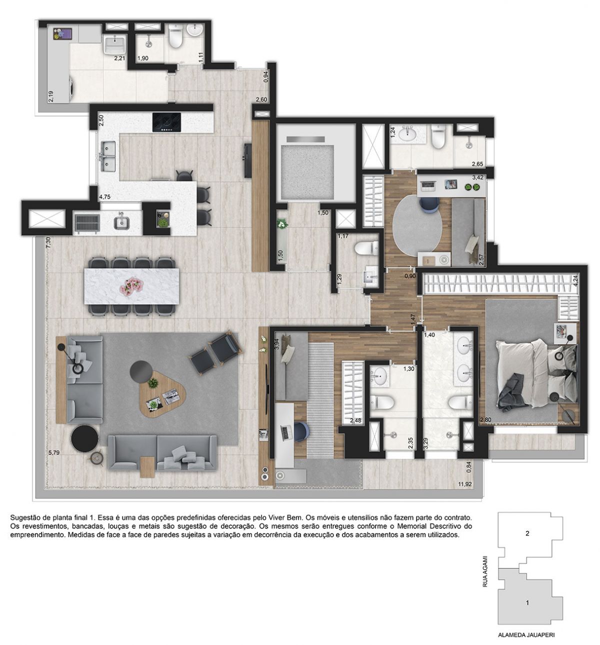 Apartamento com 3 dormitórios sendo 3 suítes e 2 vagas de garagem