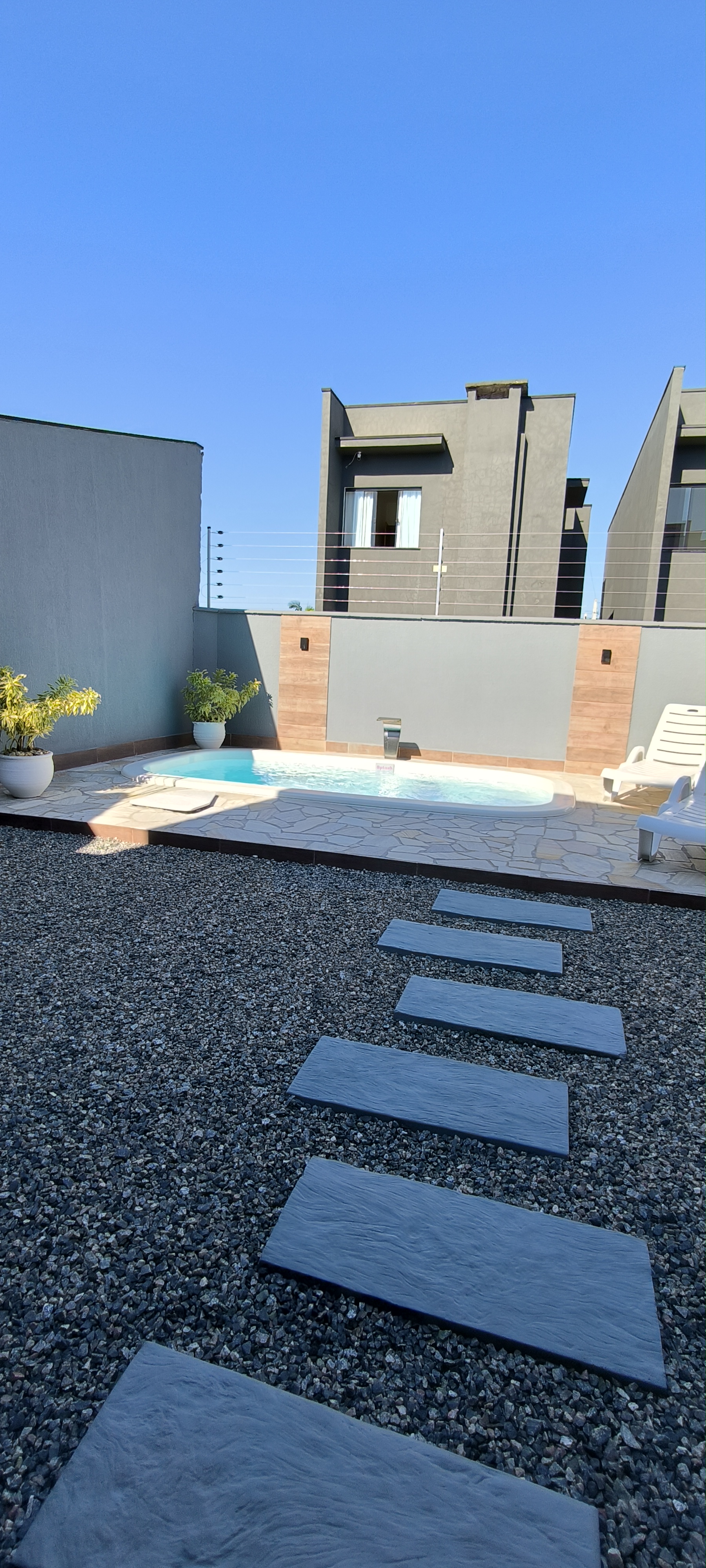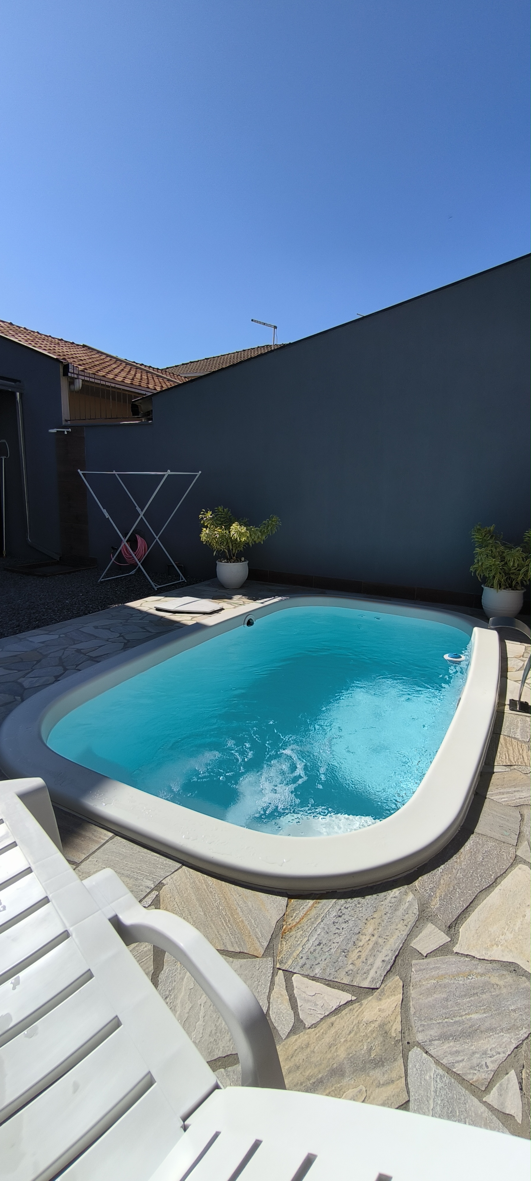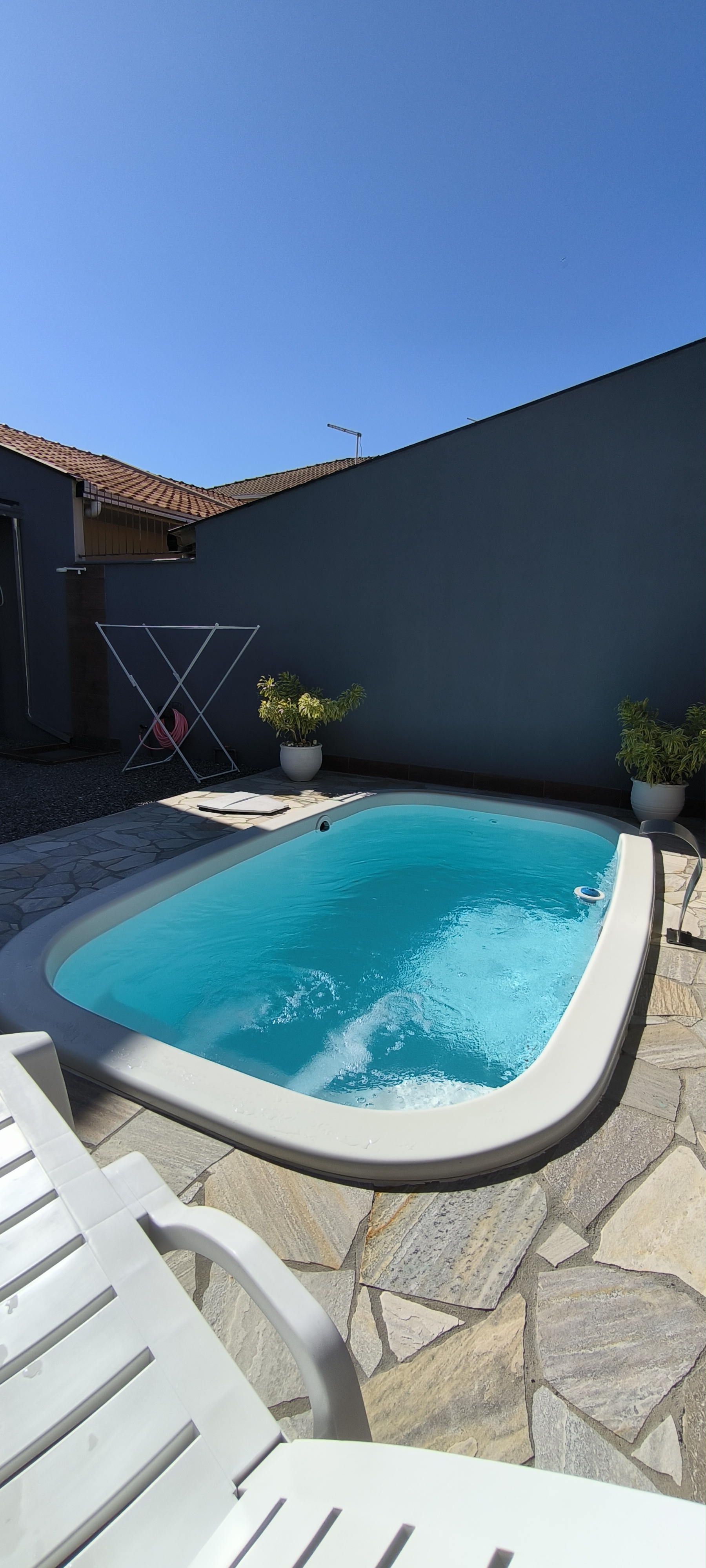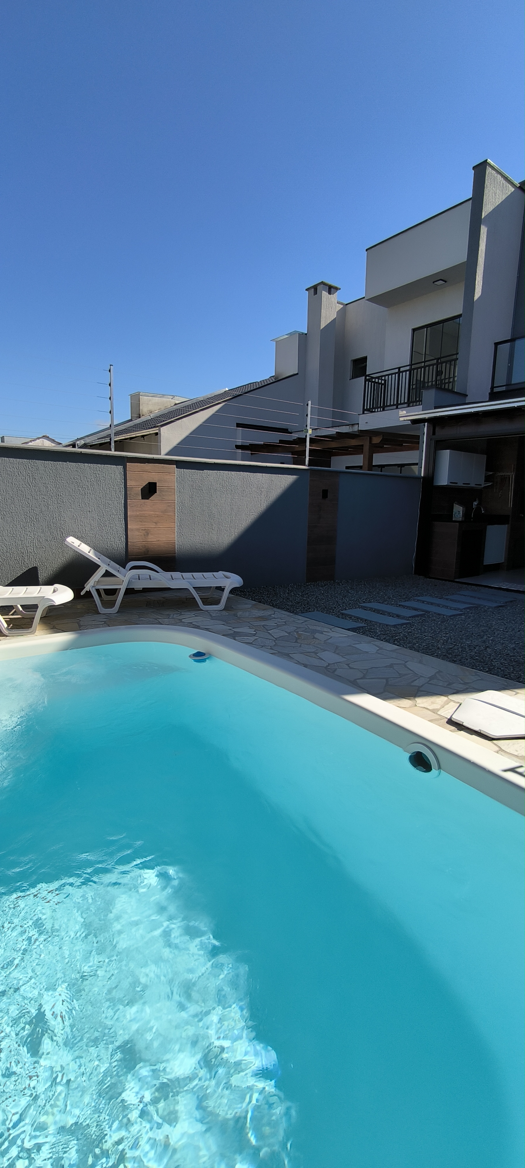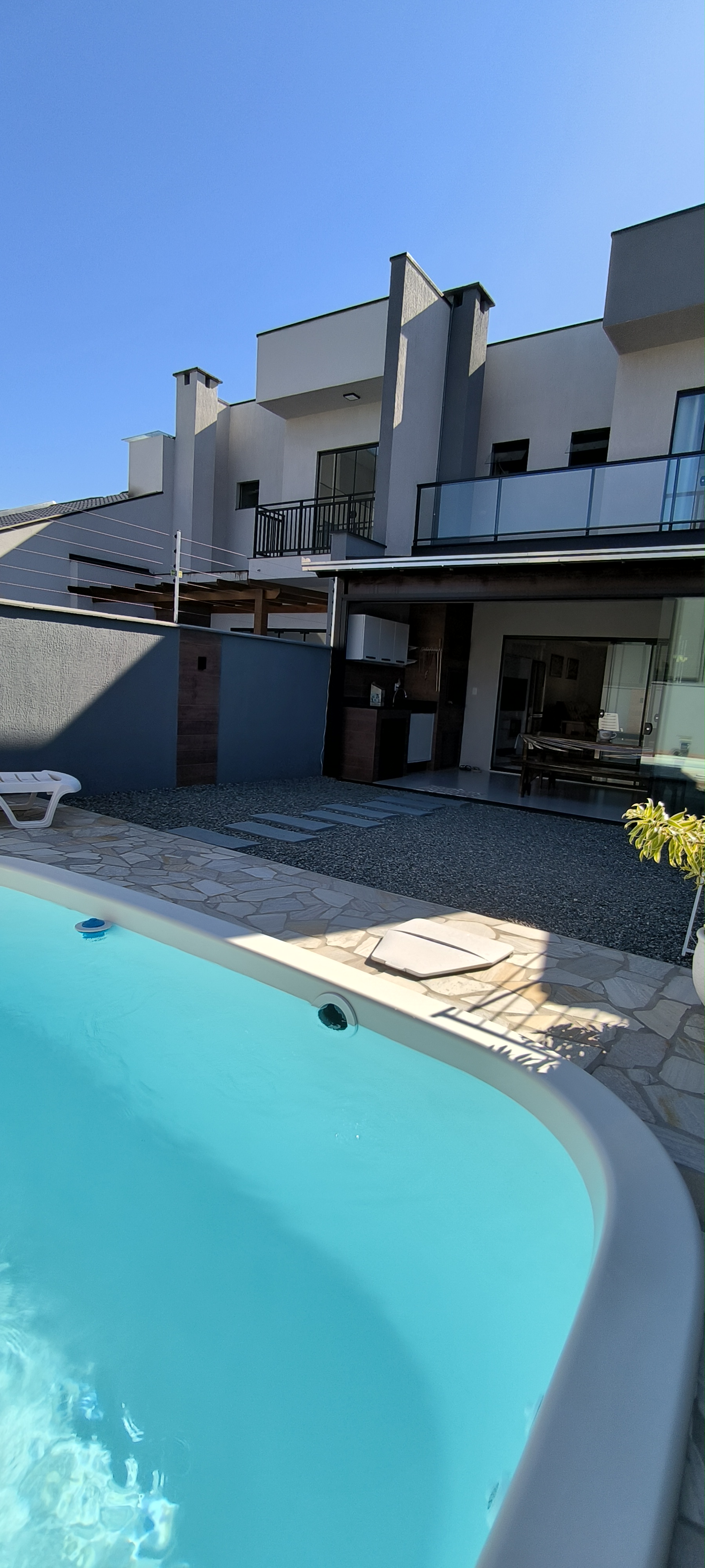 Belo sobrado com Piscina e mobiliado, sobrado em Itajubá, de 106m². LInda suíte com sacada, 2 quartos com sacada. Sala e cozinha integradas, lavanderia. Área de festas com churrasqueira e tudo isso com fácil acesso a BR101 e próximo a comércio em geral, rua calçada. 1 vaga de garagem coberta, portão eletrônico. Bem iluminado e charmoso. Vem conhecer!