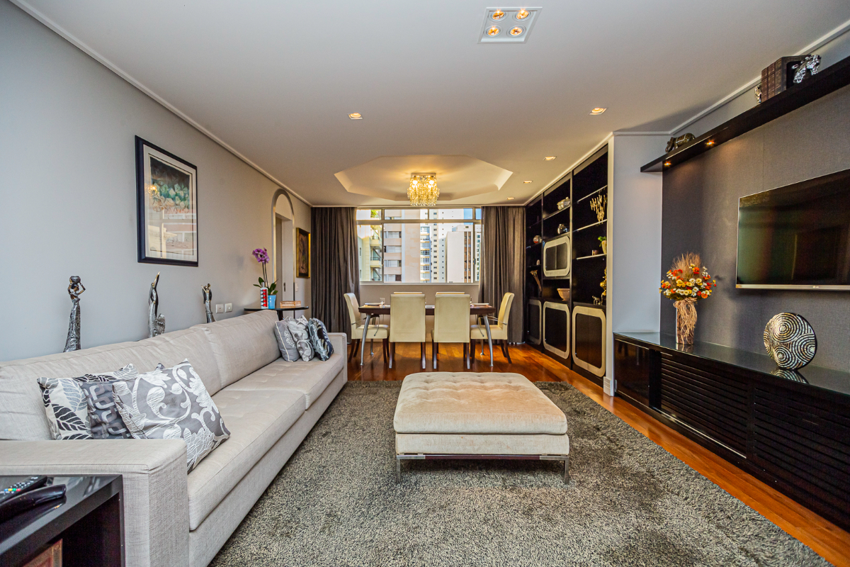 Venda apartamento sofisticado reformado Rua São Vicente de Paulo 456, 3 dormitórios,1 Suítes, 212m² 2 Vagas, R$2.250.000,00 Charmoso já na entrada, esse imóvel de alto padrão, com hall privativo, elegante acabamento com piso de mármore verde Ubatuba. O living tem muito conforto, ampla sala para 3 ambientes bem definidos, com disposição versátil. A sala de estar está próxima a grande varanda, vista lateral, integrando esses dois ambientes; dois jogos de poltronas namoradeiras, convidam e agradam seus convidados. O living tem iluminação embutida, assim como as prateleiras dando sofisticação. A sala de tv fica ao centro dividindo os vários ambientes. A ventilação cruzada é um ponto alto, varandado de um lado e do outro a grande janela da sala de jantar. A privacidade do lavabo, se esconde em um mini corredor cerrado por duas portas entre a cozinha e a sala dando liberdade e conforto para seus convidados, além de ventilação natural. Lindo piso em tábuas corridas de madeira, iluminação embutida, além de muitos armários e prateleiras planejadas dando o charme desse imóvel em harmonia com os detalhes das portas. O Largo e longo corredor separa o living da área privativa, com um roupeiro generoso e três dormitórios muito confortáveis. A suíte master é super espaçosa, com walking closet ao centro com o pé direito alto. A esquerda, o dormitório com grandes janelas, mesa de trabalho, bancada de madeira que circunda até a cabeceira, gavetas dão organização e praticidade. Um sofá de apoio com grandes espelhos tornam o ambiente agradável e bastante útil. O banheiro é generoso em espaço e sofisticação, com pias para o Sr. e Sra., aquecimento a gás, ventilação natural, iluminação embutida, armários sob medida e grande espelho. Os outros dois quartos são atendidos por uma suíte americana, ambos compartilham um banheiro completo, moderno, pia em mármore, box blindex, aquecimento à gás e ventilação natural. Estes quartos contam com armários grandes planejados, mesa de apoio, prateleiras, pé direito alto, piso laminado e ótima iluminação. A suíte americana é versátil e pode ser facilmente transformada em duas suítes independentes, caso seja a necessidade da sua família. A cozinha é imensa, bastante clara com grandes janelas e muito funcional. A copa tem duas entradas, um ambiente muito agradável, amplo, com pé direito alto, dando vontade de tomar longos cafés da manhã todos os dias da semana. A cozinha está muito bem equipada com coifa, fogão, muitos armários, generosa bancada em granito preto num estilo moderno dividindo o ambiente generoso em espaço e luz. A área de serviço é um apto aparte. Com uma planta quadrada esse imóvel tem a versatilidade de transformar a dependência de serviço, banheiro e a despensa em uma outra maravilhosa suíte, e o 4° dormitório, com a possibilidade de integrar para o corredor dos quartos. A longa lavanderia, te atende de