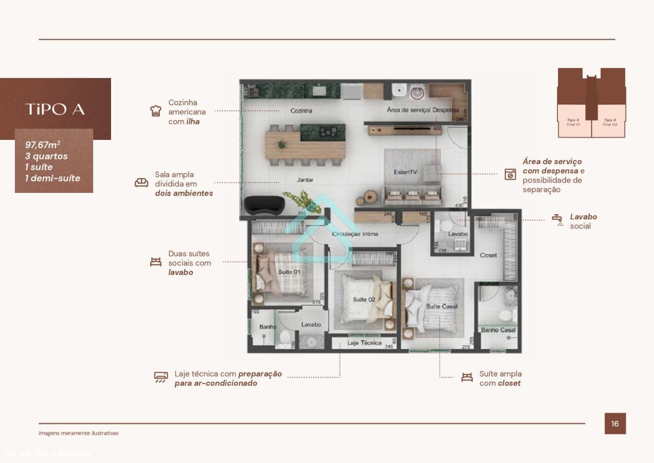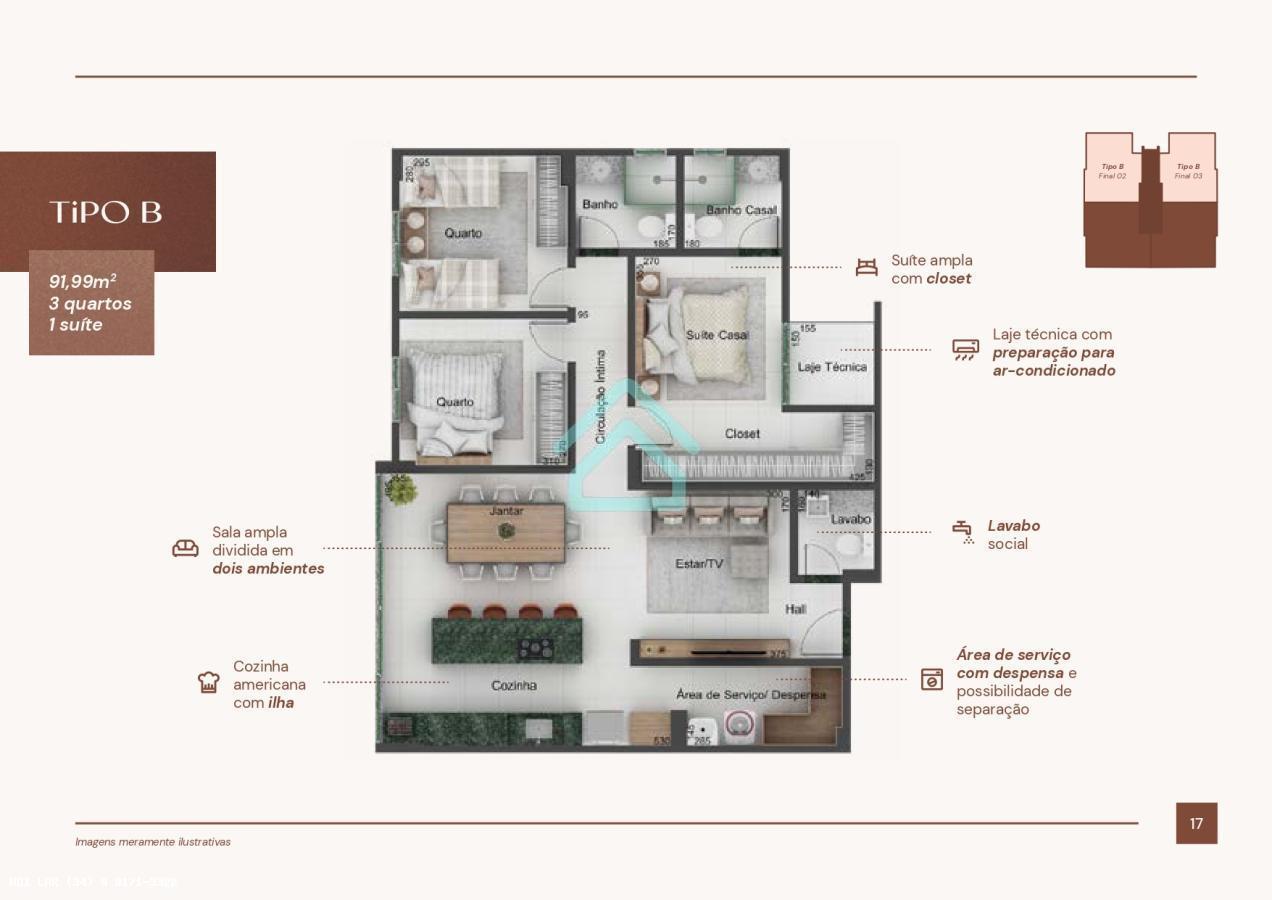 - Quartos: 3 quarto(s)
