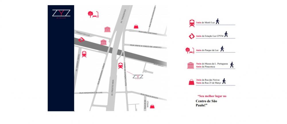 www.hiranoimoveis.com.br creci 22.361-j fone 11 2693-0000 Referência: ST6035V - Lançamento !! O Empreendimento ZYZ está localizado ao lado da estação do metro LUZ da linha Verde (norte/Sul) do Metro de São Paulo. O empreendimento é ideal para quem não quer desperdiçar tempo em deslocamento e maximizar o tempo da forma que quiser aproveitar, pois fica a 1 minuto da estação do metro, 6 minutos da estação do trem CPTM, 6 minutos do parque da Luz, 5 minutos da rua 25 de Março. Diferenciais: áreas comuns: Previsão para Ar Condicionado nos ambientes; Infraestrutura do grupo gerador que atende segurança, portões de acesso e iluminação das áreas comuns; Previsão de infraestrutura para câmeras de segurança; Previsão de infraestrutura para aquecimento solar; Aproveitamento de Água de Reuso. Unidades: Todas as unidades com previsão para aquecedor de passagem; Ponto de TV e telefone; Ponto para fogão elétrico; Previsão para água quente no chuveiro e pia do banheiro. Lazer: ÁREAS COMUNS: SALÃO DE FESTAS / COWORKING, FITNESS AO AR LIVRE, LAVANDERIA, SALÃO DE FESTAS / JOGOS, ESPAÇO GOURMET, TERRAÇO ESPAÇO GOURMET, PISCINA, SOLARIUM, ROOFTOP Previsão de valor: R$ 9 mil o m2. Valor do apto: R$ 9 mil * 23 m2 = R$ 210 mil e_mail: contato@hiranoimoveis.com.br Julho de 2020
