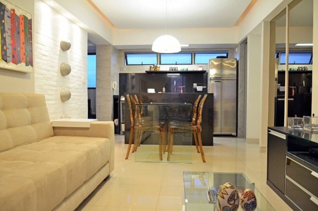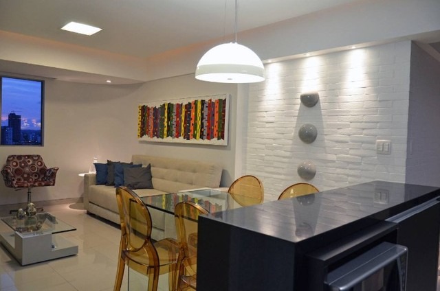 Apartamento: 49m² 01 quarto Varanda Apartamento mobiliado Lavabo 01 vaga de garagem Lazer Área gourmet Salão de Festas Piscina Estrutura: 05 Apartamentos por andar 12 Pavimentos 02 Elevadores Portaria 24hs Gás encanado Gerador Poço Antena Coletiva Agende sua visita urgente